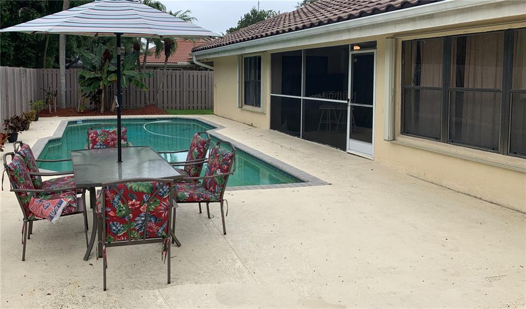 This is the lowest priced single-family pool home in desirable Country Isles Executive Homes! The perfect family home that’s super convenient within walking distance of Country Isles Elementary School, Heron Park, and Weston Town Center. The vaulted ceilings and multiple sliding glass doors in the rear of home make it feel very open and spacious with a direct view of a gorgeous pool when you first enter the home. Home has a newer roof and fence for peace of mind on some otherwise costly replacement items. Home features popular white kitchen cabinets. Charming covered front porch and rear patio give you plenty of covered outdoor living areas. Home has accordion shutters for peace of mind. Large tile flooring and laminate in bedrooms for easy care and clean up. Zoned for “A” rated schools.