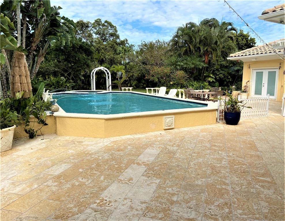 Beautiful estate home in Davie, 5 bedroom 3 bath, quiet gated community. From the covered front entry to the landscaped spacious back yard with unique pool and pond, this home features a large master bedroom suite with dual closets, master bath with jacuzzi tub and marble flooring, neutral tile flooring throughout living areas, carpet or wood in bedrooms, kitchen has Chicago brick accents with generous cabinetry and granite countertop space, large breakfast area overlooking pool and patio, formal dining room, lots of windows allowing natural lighting. Split floorplan with high ceilings. Large back patio with built in grill and brick oven and special design pool. Fifth bedroom could be office, den or playroom with closet. All sizes and age are apx. to be verified. Home Beautiful !!!