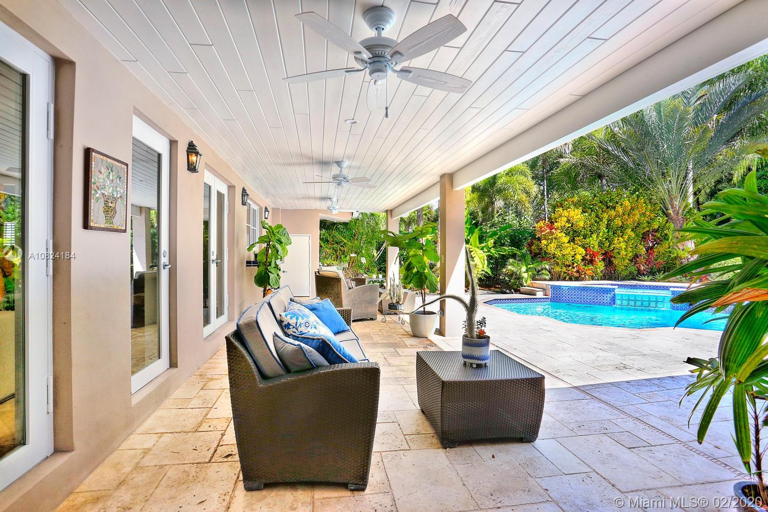 Magazine quality estate surrounded by a ~20,000 SF lush tropical lot w/ mango & avocado trees. Located in a prime North Pinecrest neighborhood. Major renovation & expansion in 2003 w/additional recent updates including appliances, HVAC's, bathrooms & new roof. Light-filled living spaces feature marble & wood flooring, volume ceilings, California shutters, crown moldings & a working fireplace. Large, open kitchen has center island, bar seating, custom wood cabinetry, stainless appliances (including gas range), granite countertops, walk-in pantry and separate breakfast nook. Master suite features sitting area, walk-in closet and luxurious bath with frameless glass steam shower & soaking tub. Spectacular outdoor area offers covered terraces, pool w/spa & expansive ultra-private garden.
