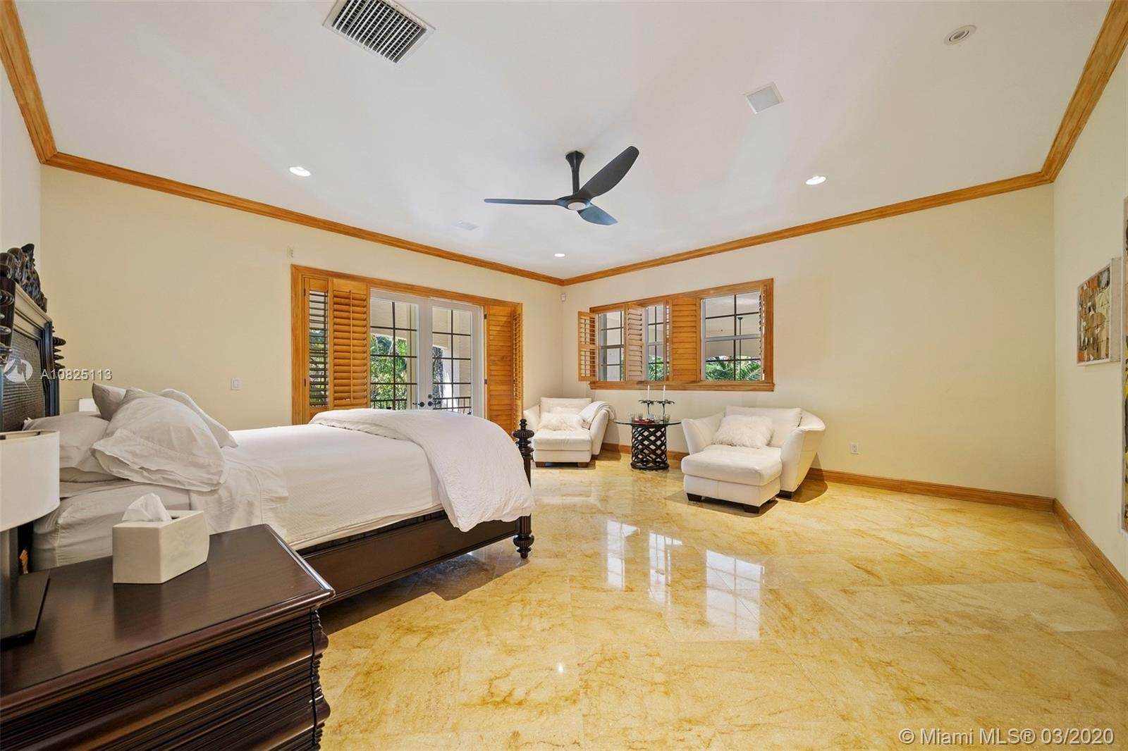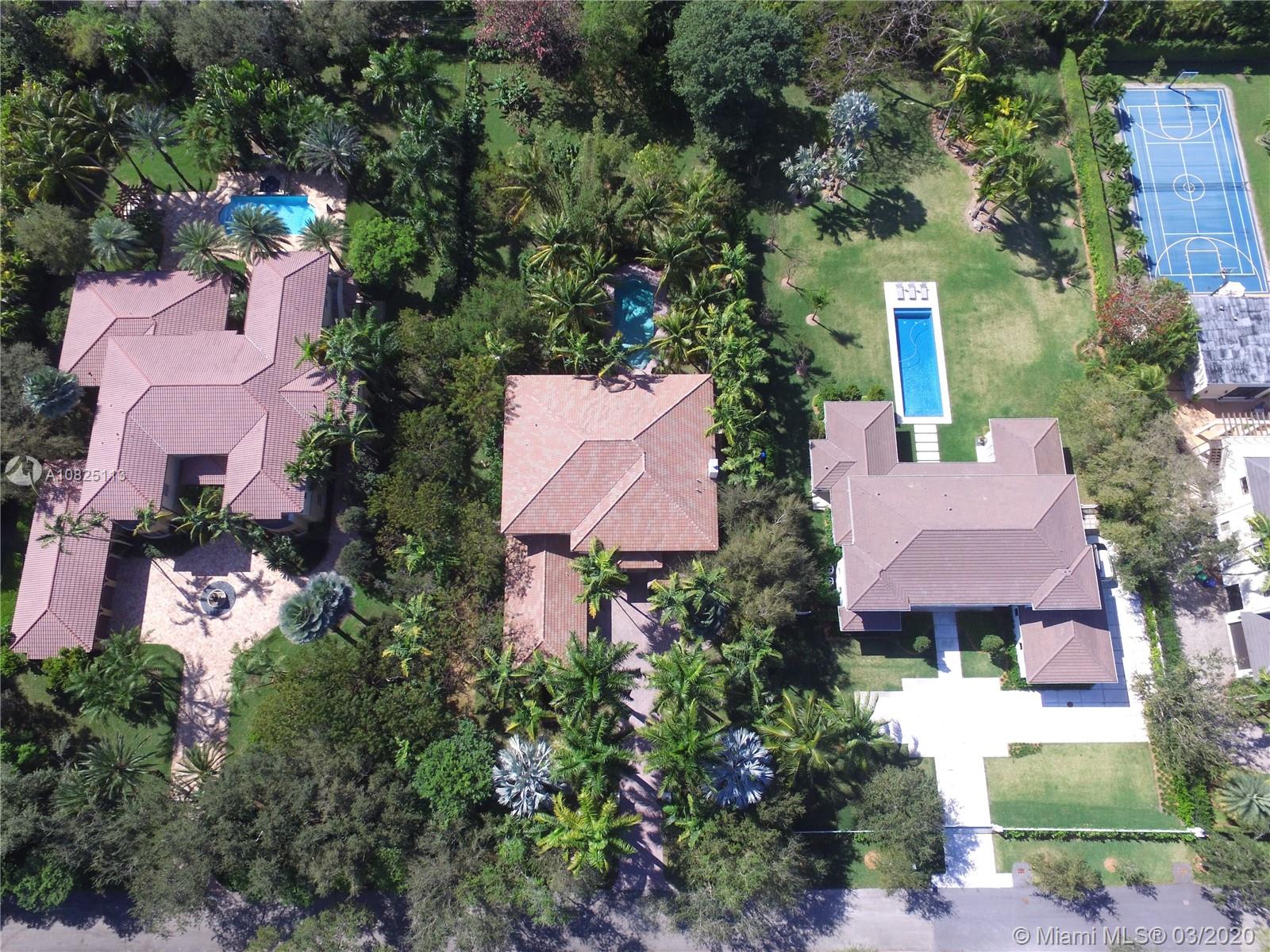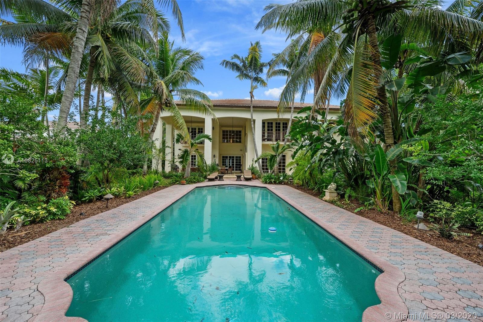 Stunning 2-story estate on one of the most tranquil streets in Pinecrest! This gated home features 5 bdrms, 5.5 baths. Formal living & dining. Volume ceilings, plantation shutters, crown molding, marble floors. Dream custom kitchen w/ 4 ovens, 2 gas ranges, eat in/ snack counter, breakfast area. Two bdrms downstairs, one w/ separate entrance. 3 additional en-suite bdrms upstairs incl. master suite w/ sitting area, two walk in closets, luxurious bath & adjacent office. Additional upstairs family rm, perfect play rm/game rm. Breathtaking backyard w/ large covered patio, is a tropical paradise. Numerous fruit trees, native Florida plantings adorn the property. 3 car garage, heated pool, surround sound, hurricane shutters. Close proximity to Pinecrest's best schools, Pinecrest Elementary.