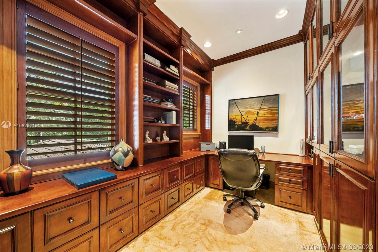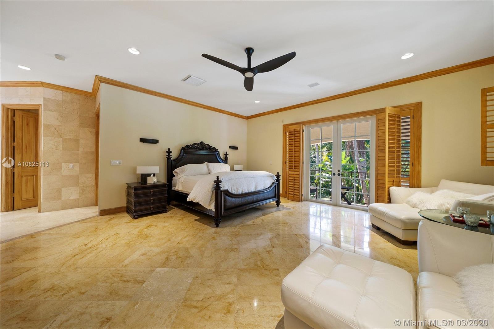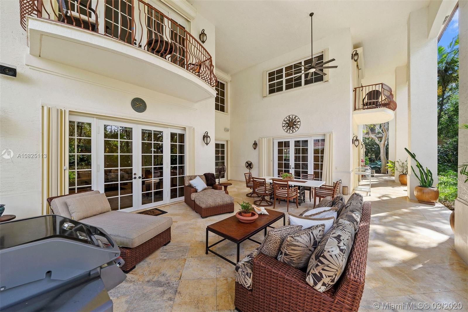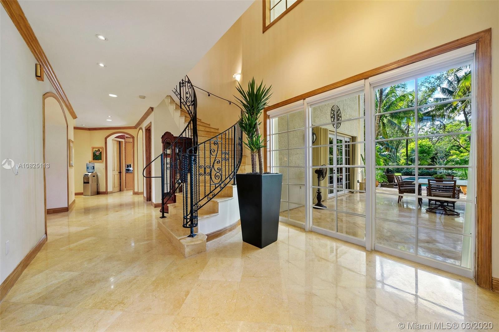 Stunning 2-story estate on one of the most tranquil streets in Pinecrest! This gated home features 5 bdrms, 5.5 baths. Formal living & dining. Volume ceilings, plantation shutters, crown molding, marble floors. Dream custom kitchen w/ 4 ovens, 2 gas ranges, eat in/ snack counter, breakfast area. Two bdrms downstairs, one w/ separate entrance. 3 additional en-suite bdrms upstairs incl. master suite w/ sitting area, two walk in closets, luxurious bath & adjacent office. Additional upstairs family rm, perfect play rm/game rm. Breathtaking backyard w/ large covered patio, is a tropical paradise. Numerous fruit trees, native Florida plantings adorn the property. 3 car garage, heated pool, surround sound, hurricane shutters. Close proximity to Pinecrest's best schools, Pinecrest Elementary.