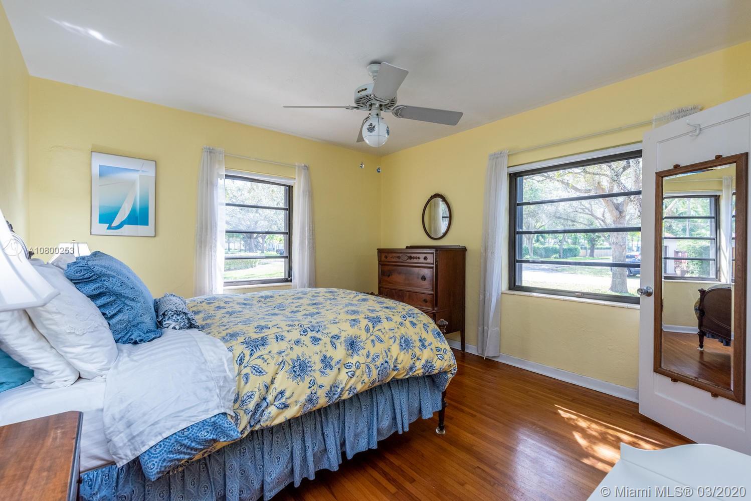 OPEN SAT, 4/25 from 1-3 PM. Miami Shores 1940's “Charmer” Welcomes you home! This is what everyone is looking for and hard to find… Original Art Deco features preserved in the decorative exterior masonry facade, in the formal dining room with curved walls and niches with shelves, in the folding glass french doors dividing the living room and family room/sun room, and in archways & decorative trim tiles in original bathrooms. There is a working fireplace w/Deco touches as well. Meticulously maintained over the years. Gleaming wood floors. On a quiet street on a Spacious corner lot and fenced yard.True 3 bedrooms (2 of them accommodate king-size beds!) plus full one car garage...good storage! Kitchen has been updated with solid wood cabinets & stainless steel appliances. A must see!