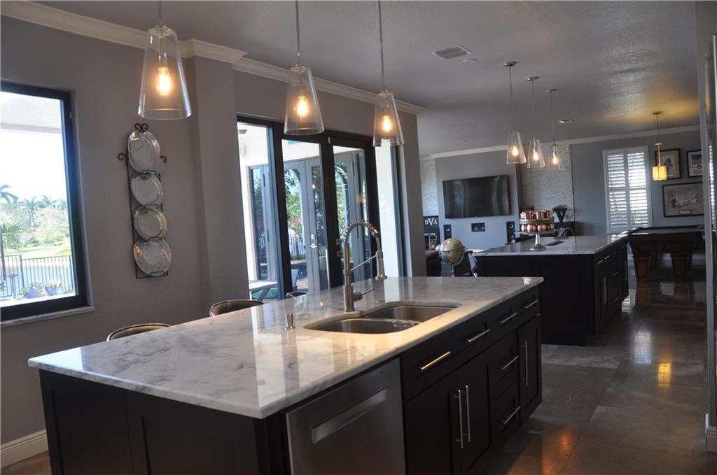 Welcome to your Sunset Lakes DREAM HOME featuring 4 bedrooms plus large loft (public records show 5 bedrooms) and 3 ½ baths fully renovated with highest quality of design & beauty. An entertainer’s delight with voluminous living spaces, a luxurious kitchen and adjacent wet bar area with dual 8’ islands. Step into a grand Master bedroom with spa-like Master bath. Beautiful marble floors in all living areas/staircase and gorgeous hardwood floors in all bedrooms. Everything new in the last 5 years: kitchen, floors, baths, impact windows/doors, dual 4-ton ACs, plantation shutters, all appliances, water heater. Zen-like landscaping w/ fountain. One of the best lake views in all of Sunset Lakes. Owner will consider selling fully furnished. Won't last at this price. Schedule showing today!
