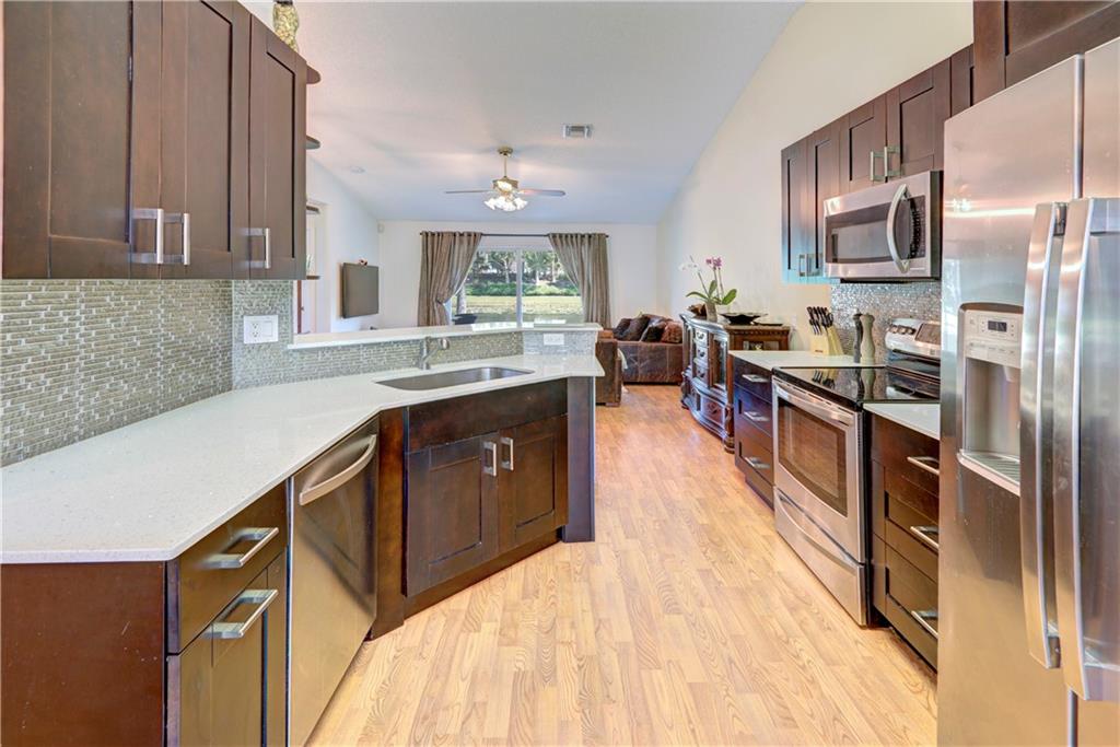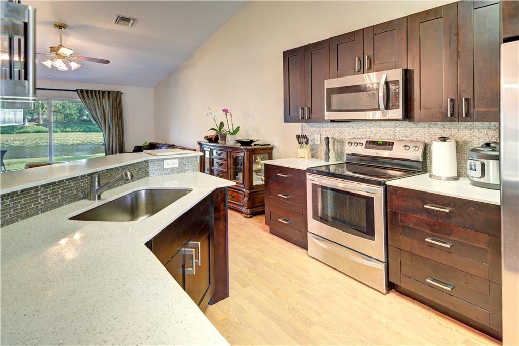 This 3 bed 2 bath villa has the feel of a single family home and shows like a model. Water views from living areas & master bedroom. Covered patio. 2 car garage. Quiet, gated community with access to recreation facilities of Savanna - 3 pools, waterslide, clubhouse, mini golf & playground. Walk to Gator Run Elementary. Very well maintained. Move-in and enjoy! Very low HOA. "A" rated schools. Kitchen renovated in 2017. All appliances including washer and dryer are 2017 or newer. Electric water heater under 2 years old.