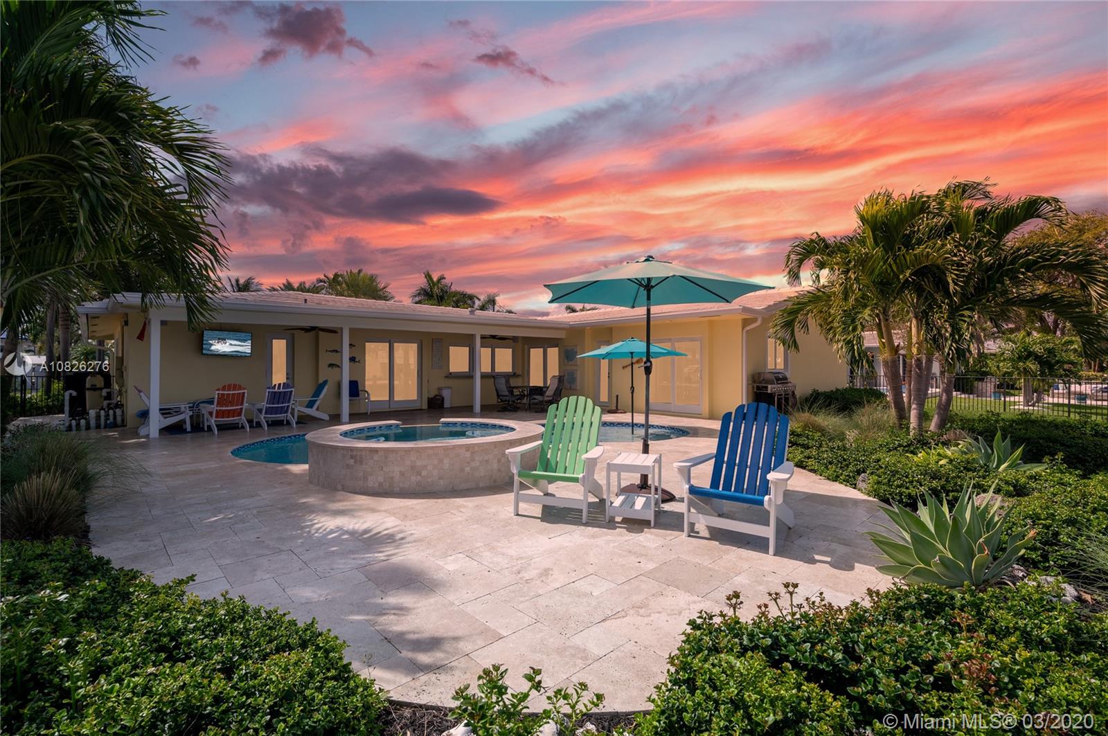 This exceptional waterfront home was completely re-designed & remodeled using the finest materials. It features a beautiful Chef’s kitchen with Wolf/Sub-Zero (gas) appliances, Perlick wine fridge & clear-ice ice-maker, hardwood floor, indoor laundry room, 2 luxurious full cabana bathrooms , newer roof and A/C unit, solid-core interior doors, heated salt-water pool/Jacuzzi with waterfall,new 55’composite dock with electric service, on-demand, gas water heater, exterior electric panel for generator, professionally landscaped/lighted/irrigated. PGT Impact Windows & Doors. Desirable northern exposure lot, one house from ICW. Please see the attached document for more feature details. Enjoy the photos because there aren’t enough words to describe this home.