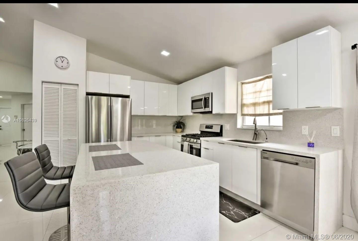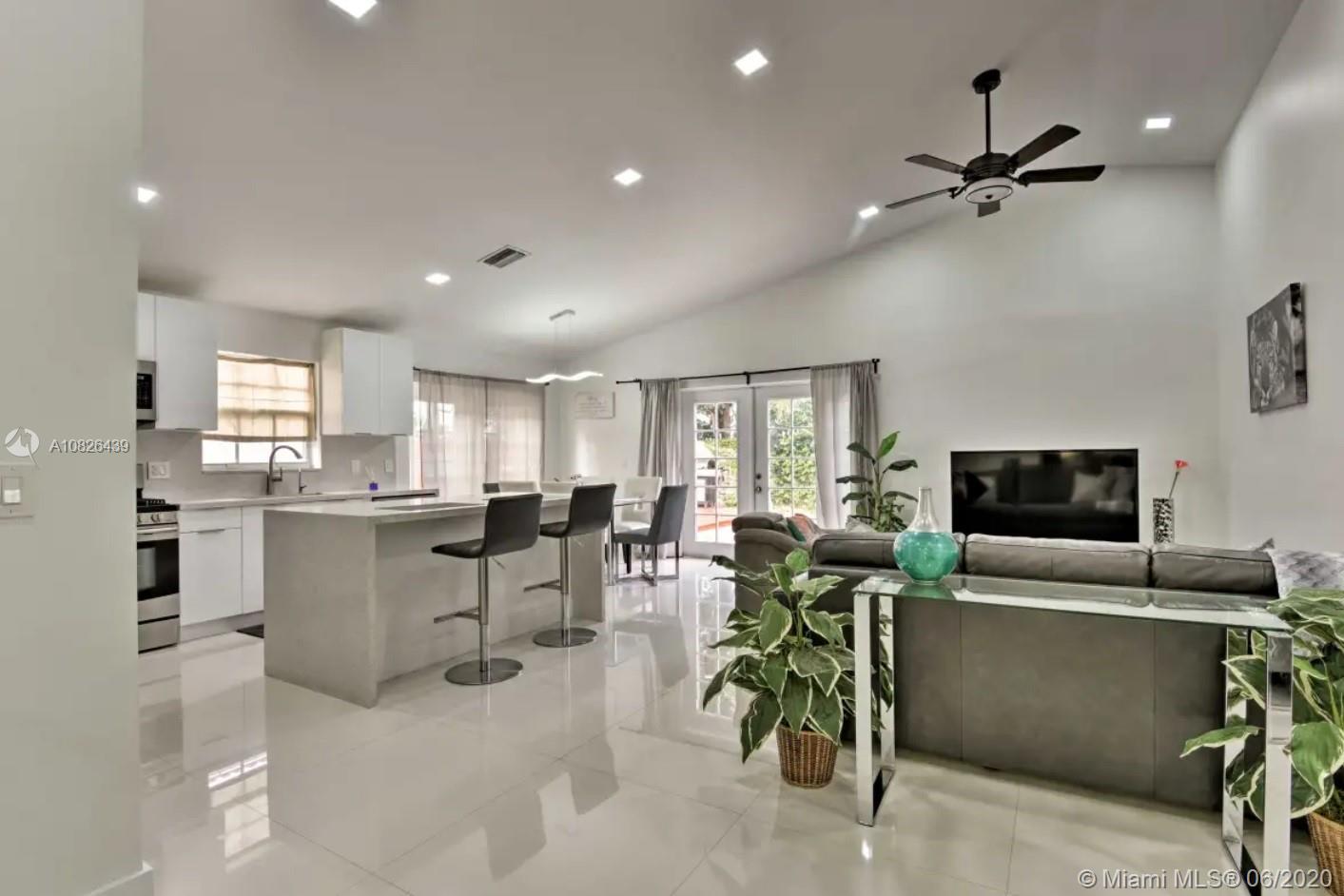 Spacious 4/2 with Pool and family room beautifully remodeled. Modern and Contemporary look. Freshly painted. Vaulted ceilings, with LED Lights throughout and white glossy 32x32 porcelain floors. European Style white glossy Kitchen cabinets which has an Open Floor concept overlooking the family room and pool. Quartz counters. Gas Stove/Gas Water heater/Gas dryer. Cable and Blast Internet included in HOA. Excellent neighborhood with best schools. Ready to move in.