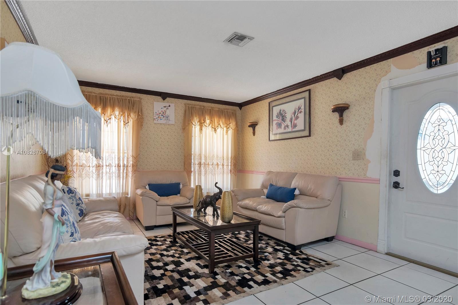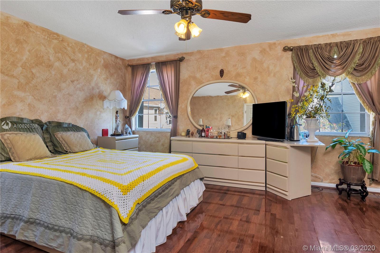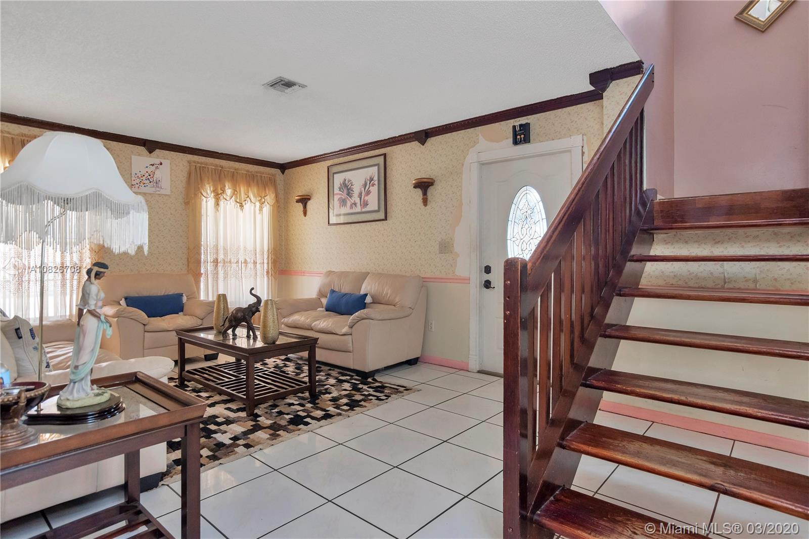 Owner has maintained property. The master bedroom is spacious. You will love the double doors to master bedroom. Closet is walk-in. When walking up to second floor, midway there is a nice window with great light coming. Granite kitchen counter tops. Plenty cabinet space. Living and dining room is separate. Garage has been converted but could easily be converted back. Washer and dryer. Huge patio and backyard. Screened in patio. Fruit trees with mangos. There are two linen closets. Storage in home. Great home for entertainment. All bathrooms have been upgraded. Ceiling fans are located in mostly every room in the house. Home is close to everything. Grocery store, major malls, major highways, schools, banks, restaurants, and not far from Ft. Lauderdale or Miami Airport.