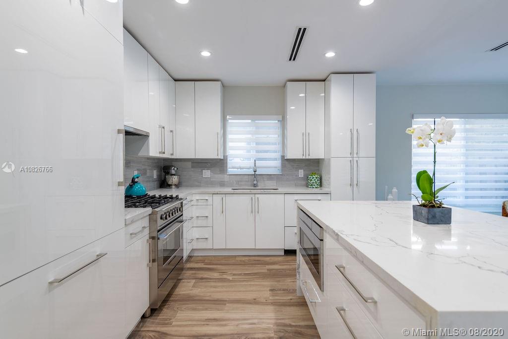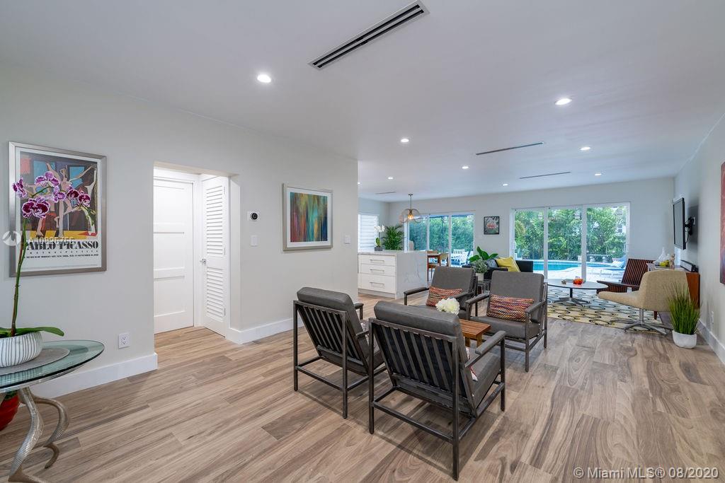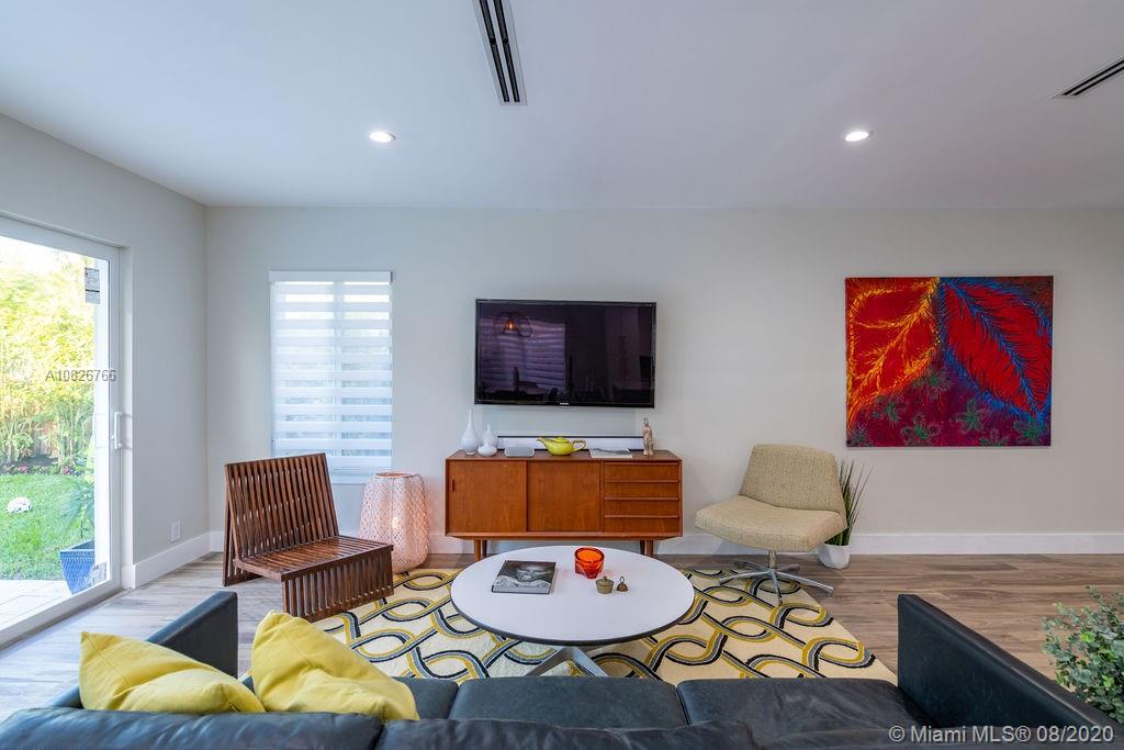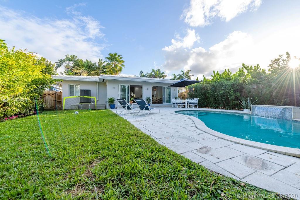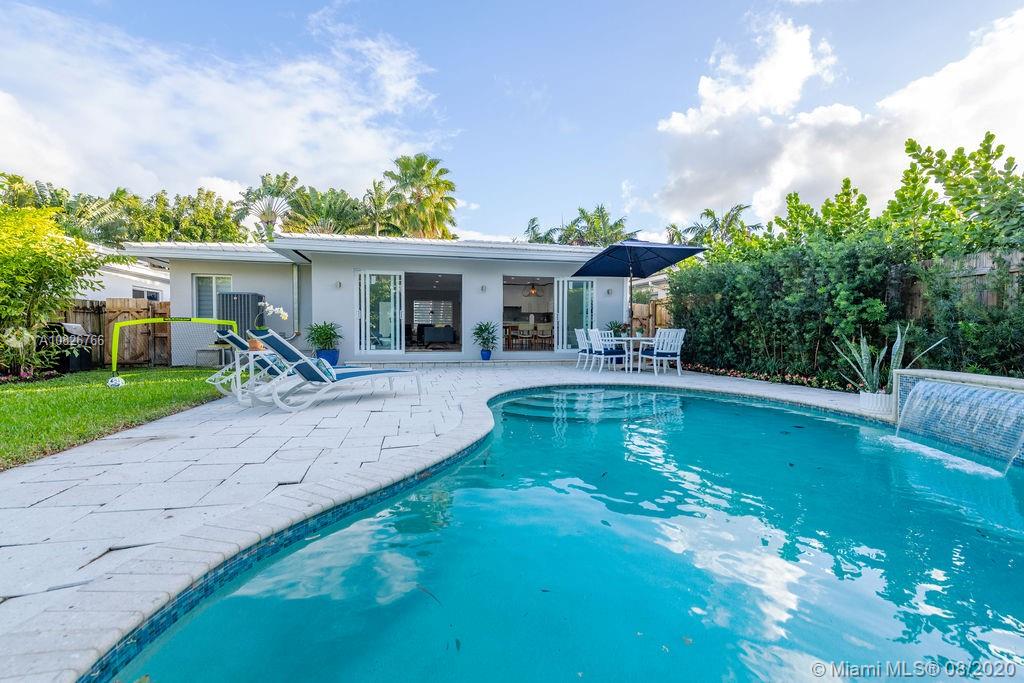 Just rebuilt and renovated tropical modern 3BR/3BA 1675 sq ft pool home on desirable Lakeview Drive, originally designed by Mid-Century Miami Beach architect Gilbert Fein. True open concept living areas, new porcelain floors, new custom kitchen, Fisher and Paykel appliances, new impact windows and doors, new recessed LED lighting, new 5-ton Rheem AC with new ductwork and linear diffusers, new electric panel, new tankless water heater, new solid wood Shaker doors, one newly built bathroom and two renovated bathrooms, new LG laundry center, new custom blinds. Two sets of triple-sliders invite you to the heated pool with water-feature, patio, and large landscaped private fenced yard. Architectural plan for 433 sq ft 4th bedroom suite addition available.