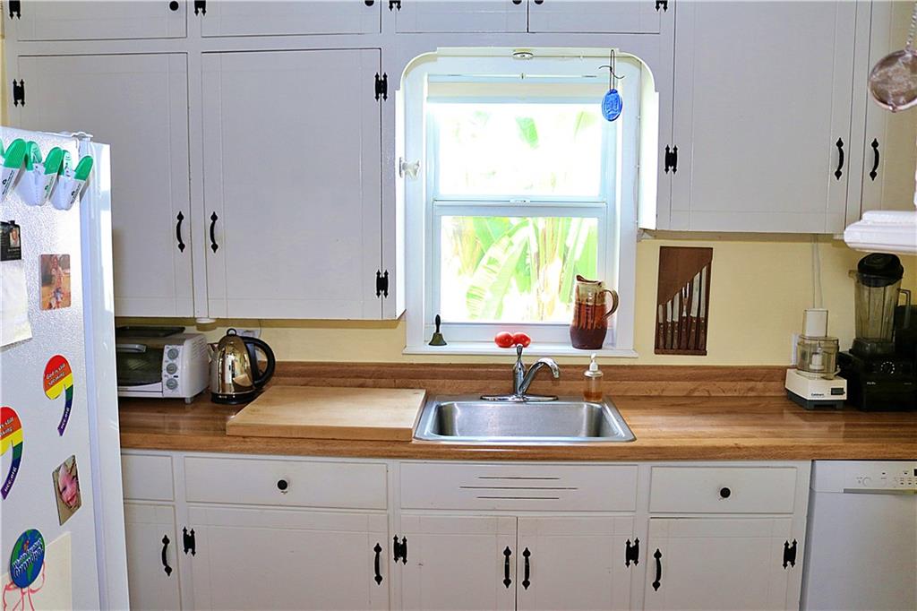 This charming corridor type bungalow on the west side of Miami Shores is a 2-bedroom, 1.5 bathroom home with a vaulted living room ceiling, gorgeous hardwood floors, original working fireplace, tiled laundry room with washer & dryer, and detached 1-car garage. Recent upgrades include: High Impact windows (2009), new roof (2015). You will want to relax on the lovely tiled high beamed screened in porch, overlooking native Florida foliage, including ground cover and a small fragrant orchard of avocado, mango, Meyer lemon, and key lime trees. This adorable cottage is just waiting for your personal touch. Welcome home!