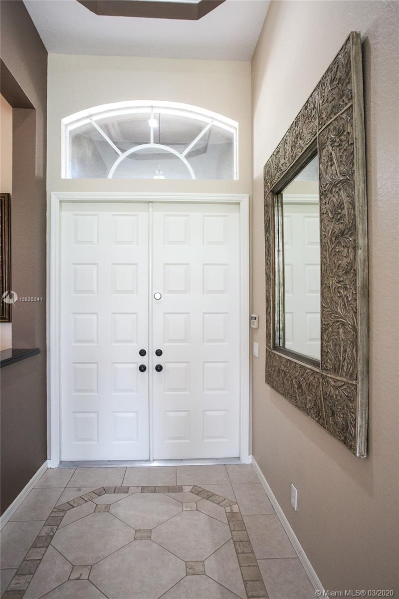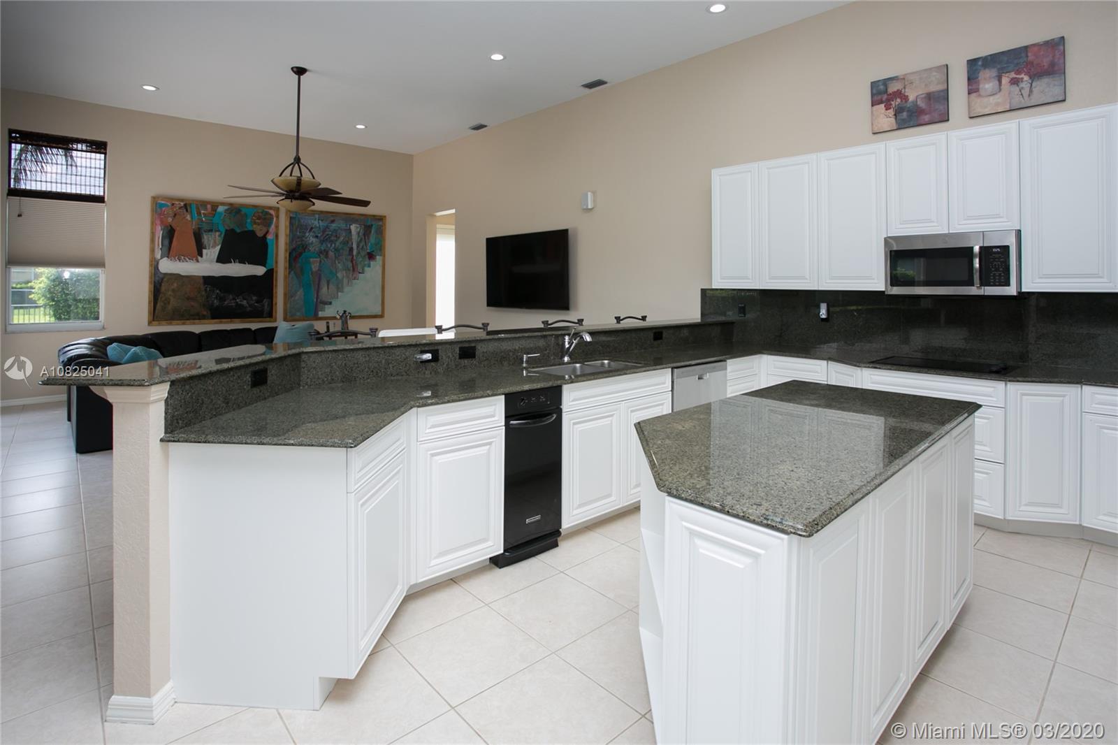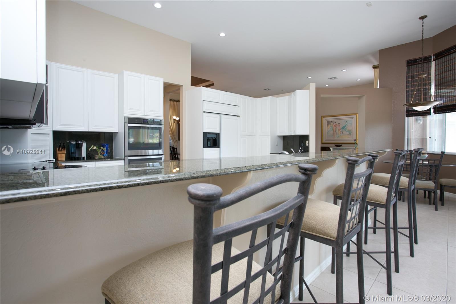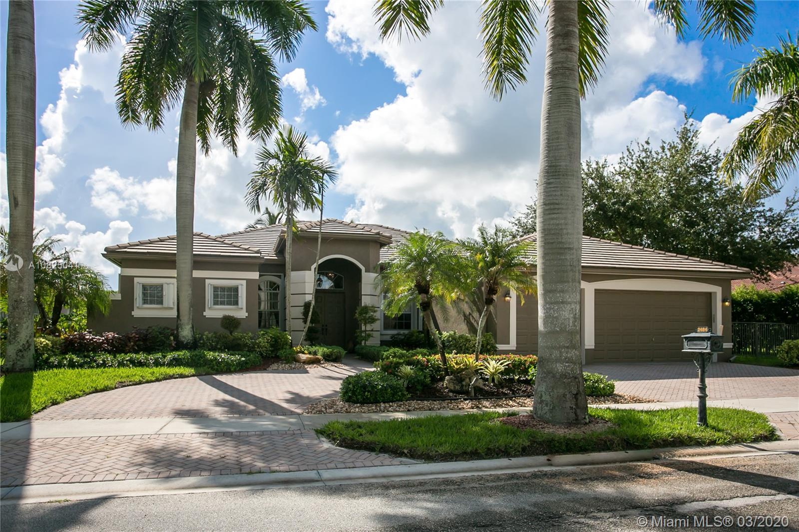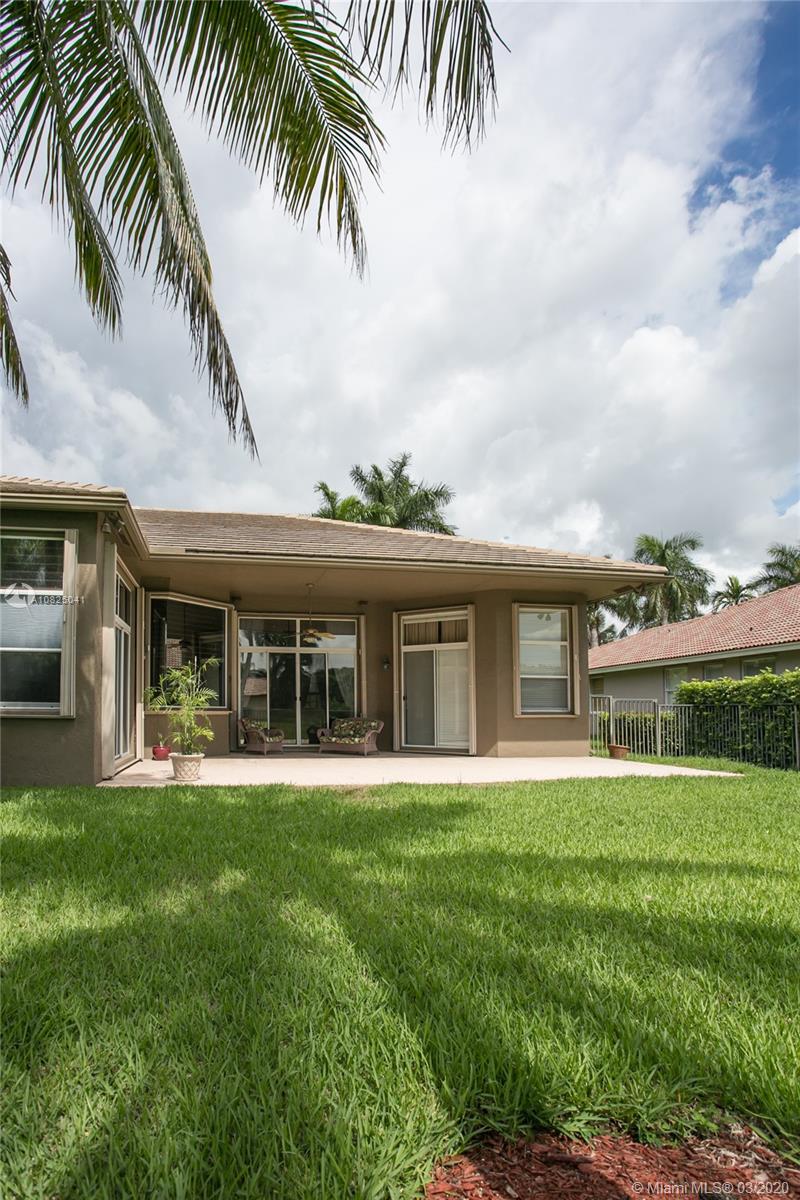 Exceptional 4 bedroom (plus office) lakefront home with long and wide water views and no neighbors behind. Large covered patio overlooks the spacious fully fenced and lushly landscaped yard perfect for kids and pets while offering complete privacy for entertaining or just relaxing. The center island kitchen is expanded and features 42" wood cabinets, granite counter tops, double wall ovens and built-in refrigerator. Master suite boasts a sitting area, 2 walk-in closets and tastefully remodeled master bathroom with designer tile, large shower, dressing bench and raised cabinets. Additional features include new LED lighting, separate utility rm and interior/exterior recently painted. Accordion shutters. 3 car garage/circular driveway offers lots of parking. FaceTime showings available!