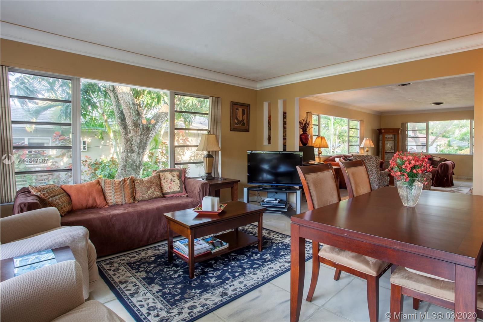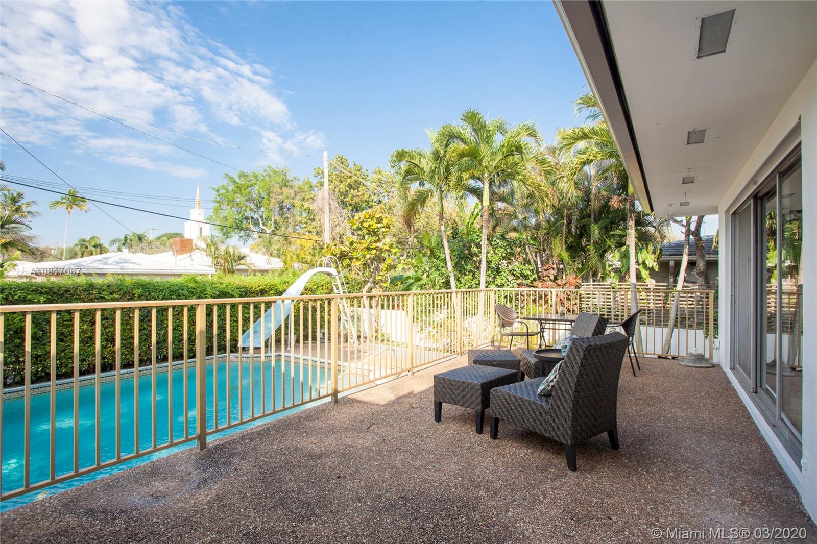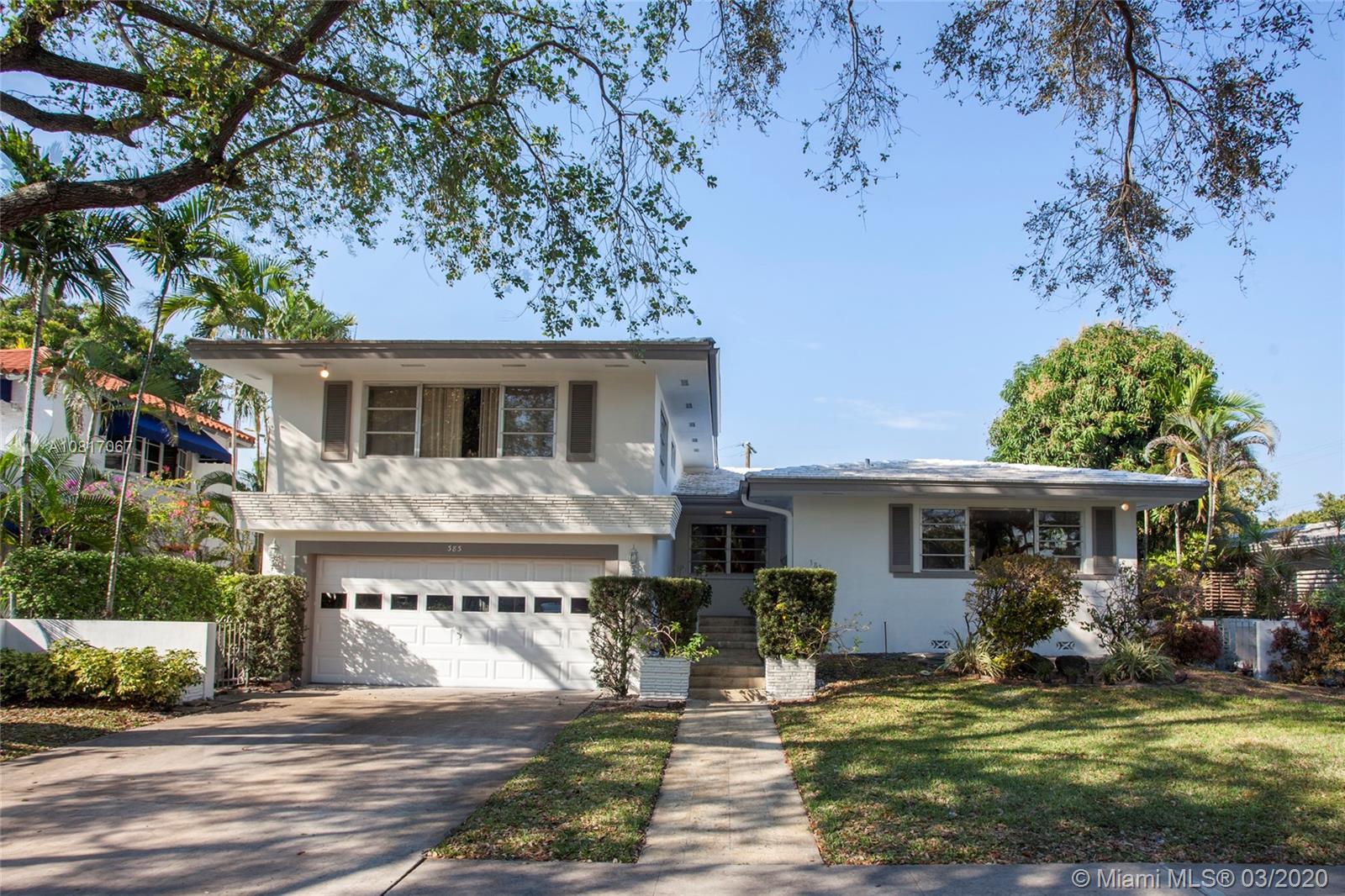 This home displays a timeless appeal with authentic mid-century modern styling. Built in 1957, the property is located in an ideal central Miami Shores Village location on a lovely oak tree-lined street. This will allow for a short walk to Downtown Miami Shores to enjoy local artisan shops, restaurants, & cafes. The backyard has large wood deck and pool with green space, & a vintage serving window from the kitchen to the outdoor deck perfect for indoor/outdoor entertaining. The spacious kitchen has an eat-in counter perfect for snacks or a prepping island for cooking. Split level design w hardwood floors upstairs with large format stone tile on the 1st floor. A must see for those seeking the true & authentic mid-century aesthetic! A lovely community to call home.