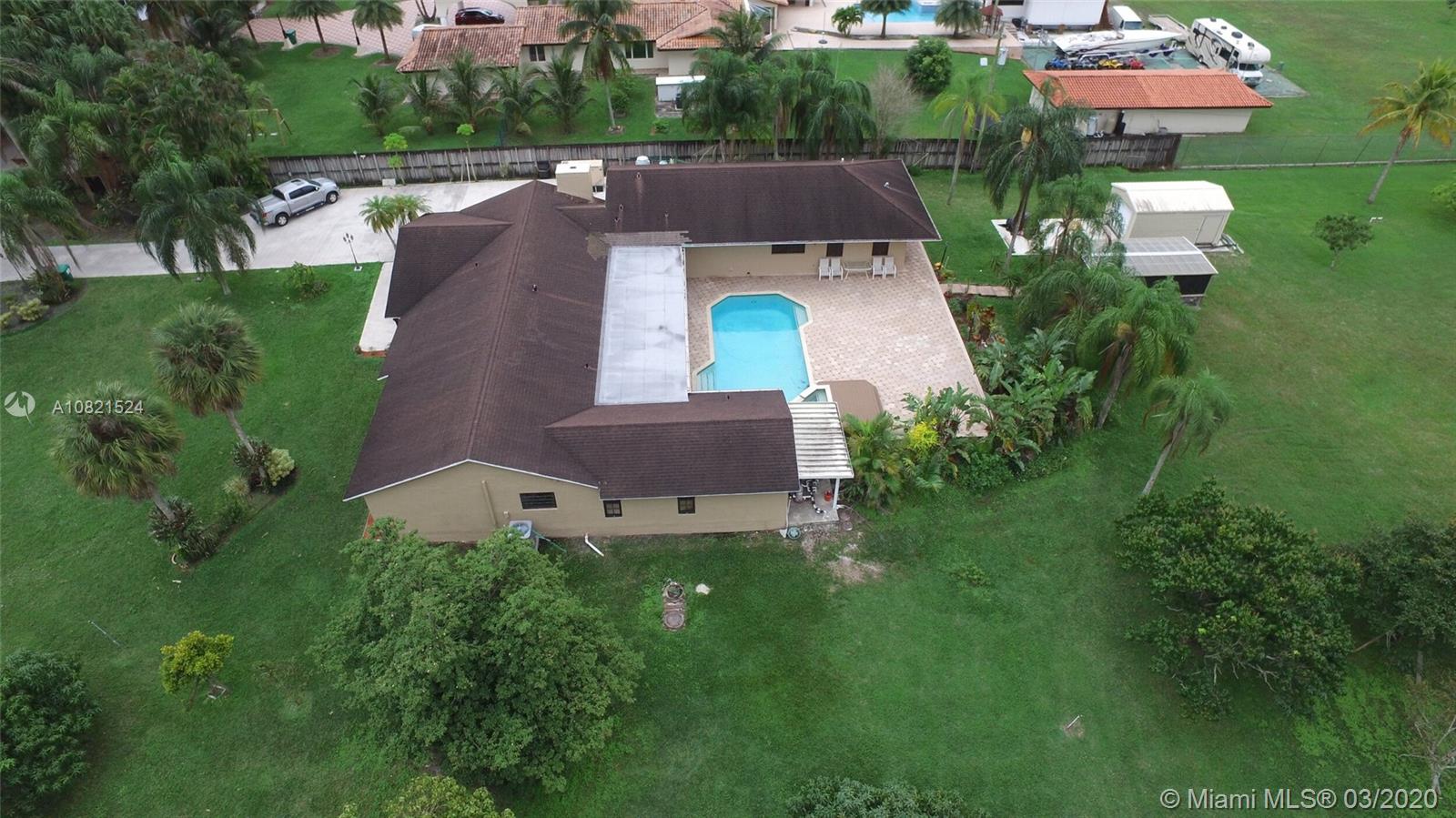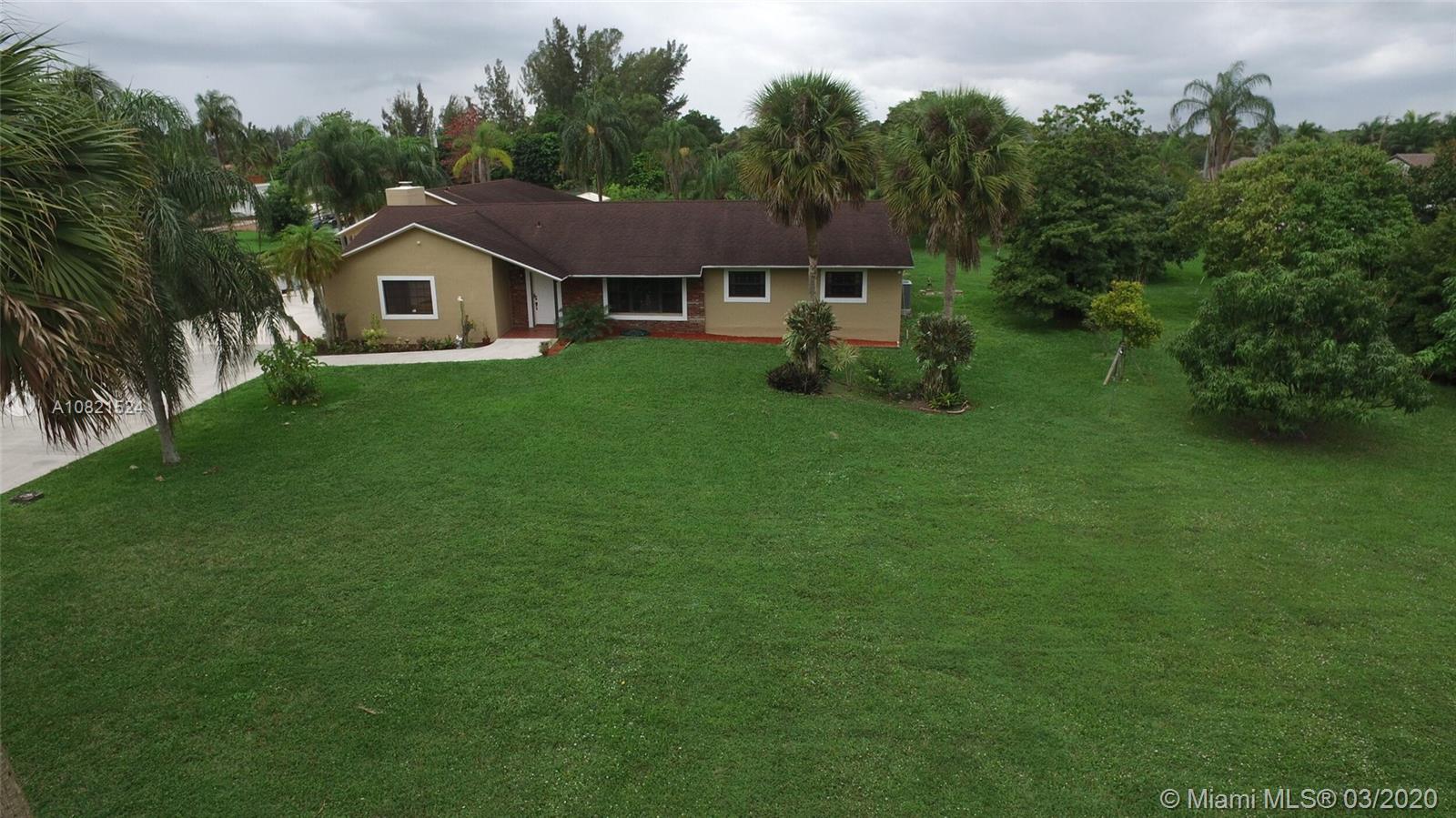 Great opportunity to own your very own oasis. This tranquil ranch estate is nestled in the secluded country club ranches within the city of Miramar close to major highways, with access to shopping centers , restaurants, malls ,schools and parks. Live the equestrian lifestyle, bring your horses and create your dream home on 2.5 acres featuring 7 rooms and 4 full bath house, Stainless steel appliances, Laundry room , including a large apartment with private kitchen and separate entrances, great for in laws or income producing. Garage legally converted in to 2 offices. Heated Pool/Spa, covered patio great for entertaining. Impact windows throughout, 40k Generator, 12 x 12 Shed. Green House 20 x 20. 16 mature Mango trees. Not many of these acre estates under a 1M . Make this your dream home!