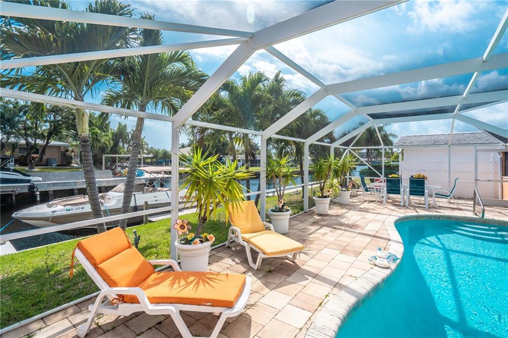 Wow factor, this Lovely Landings area home offering a T canal, Open Water views from the Wall of Glass Doors . A MUST SEE FOR ENTERTAINING. LOVELY HIGHLY POLISHED BAR IN LIV AREA. Plantation shutters! Huge living room/dining area. New Open modern kitchen built for a chef. Large Master Bedroom has cabana bath out to the pool Located on Large corner lot. Very well maintained spacious pool home with a lot of updating is waiting for you. 2 Car Garage, 5 minutes to Intra Waterway w/ one 11.5 ft. Bridge.