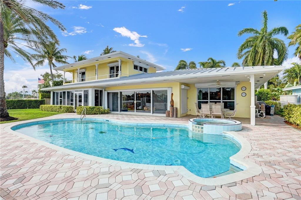 Location, Location, Location! Incredible opportunity to BUILD NEW or REMODEL on Lake Santa Barbara with wide water views (approx. 475’ across) of the lake and Intracostal. This home faces north with southern exposure. Metal roof 2015 + impact windows and doors. Water views from all living areas, kitchen and bedrooms. First floor master suite has adjoining office plus master bath has separate tub and shower. Spacious secondary bedrooms upstairs with shared balcony and bath. Spectacular backyard with pool, covered patio and grass area. 115’ waterfront with 16,000 lb boat lift. No fixed bridges and ocean access. Home has standby generator.