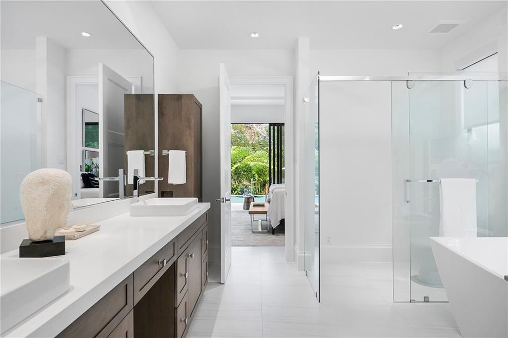 New Construction delivered January 2020 by award winning Innovative Designs & designed by Ames Int'l Architecture. Builder offering a $35,000 incentive for design and or towards closing costs to buyer. 5 Bedroom 5 Full Bath 2 story estate situated on a 75' wide lot. Features include 12' ceilings in main living area including master bedroom on the 1st floor. 3 bedrooms on 2nd floor & guest bedroom on 1st floor. Chef's kitchen includes Wolf gas cooktop & oven, Sub-Zero refrigerator & microwave, Asko dishwasher & quartz countertops. Covered summer kitchen & entertaining area overlooking amazing 13x37 pool w/sun shelf & self-brimming spa. Monolithic Steel Stringer floating staircase w/solid wood treads & steel picket railing w/wood handrail. Garage has ability to park 2 cars plus golf cart.