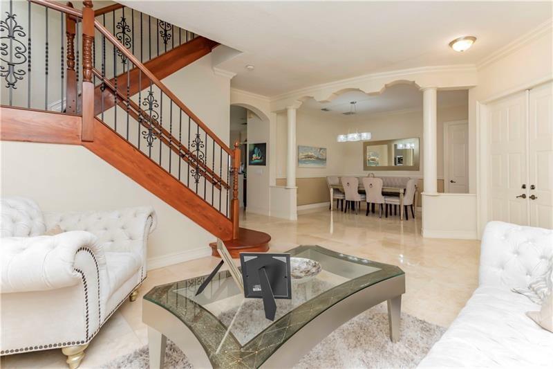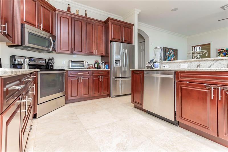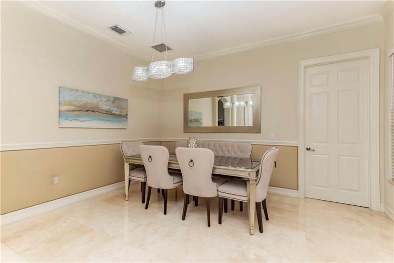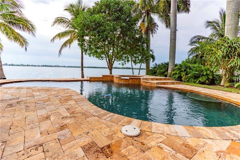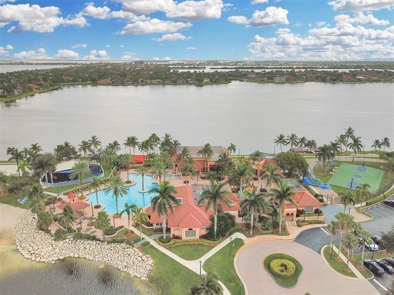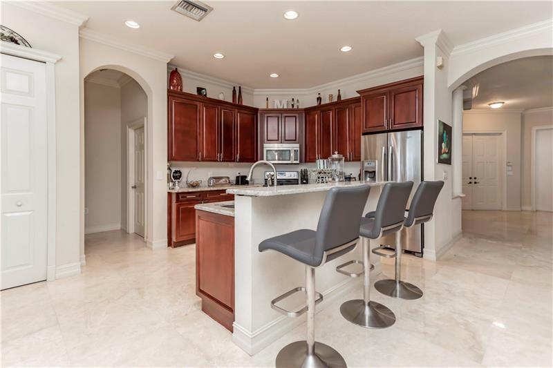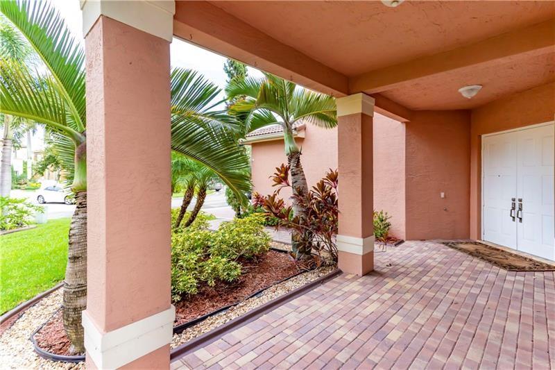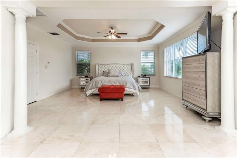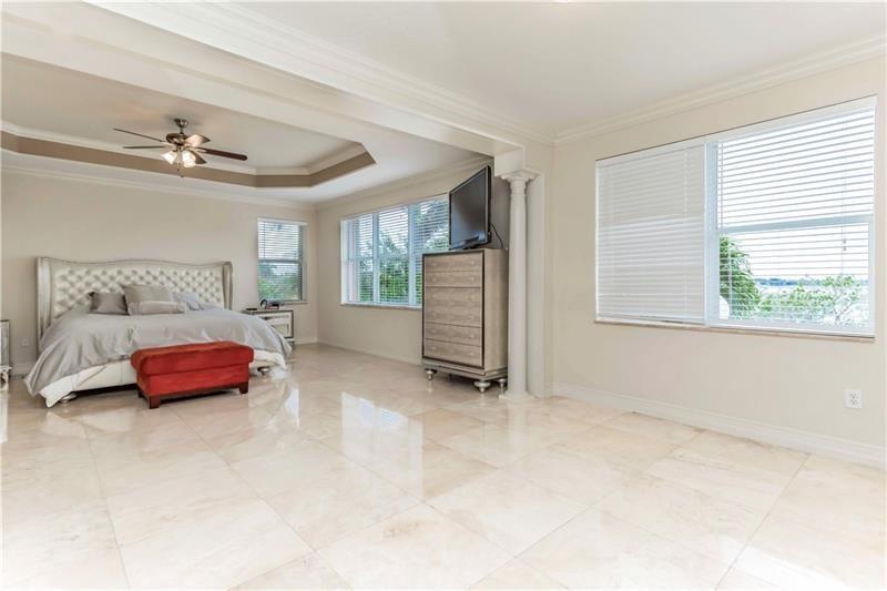 Welcome to the most spectacular wide lake views in Sunset Lakes! Waterfront 6 bedroom 4.5 bath home with a 3 car garage at the end of a cul-de-sac on an oversized lot that extends out over the lake. Features include an updated kitchen with river white granite counter tops, stainless steel appliances and cherry wood cabinets, a first floor guest bedroom with cabana bath, a separate entranced office, an enormous master bedroom with a large sitting area and his/her bathrooms connected by the shower, an upstairs laundry room, polished travertine tile throughout the entire first floor and all bedrooms, 2 a/c systems and a free-form heated pool with raised spa overlooking the panoramic views and amazing sunsets.
