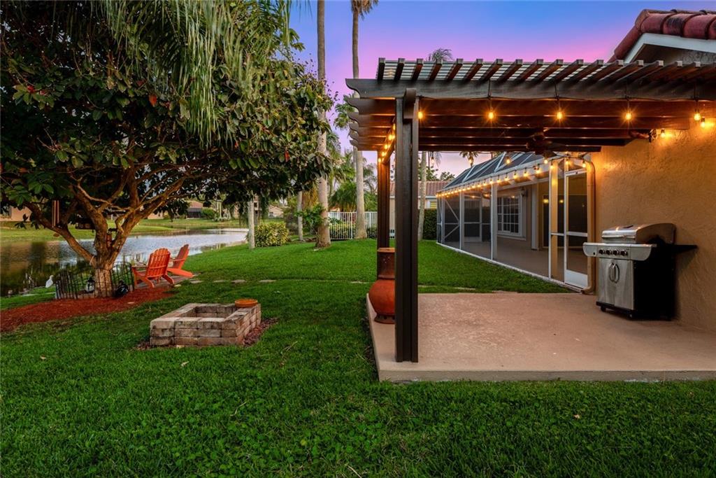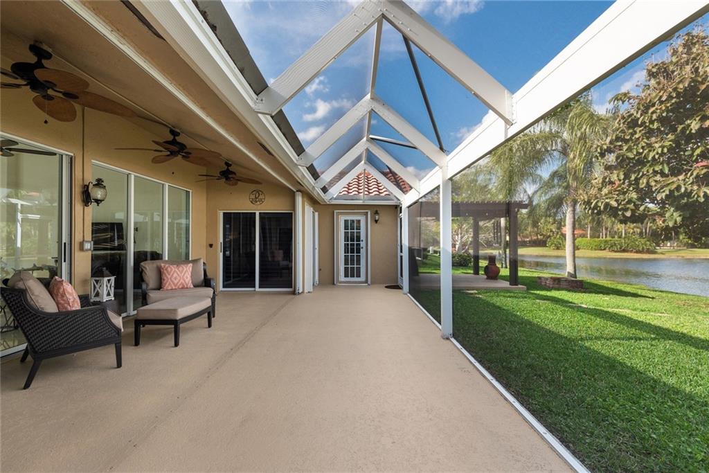 Nestled on a lake front lot, you will find this exquisite appointed home with beautiful design and finishes. Located in one of Weston's most sought after community. Among many features this bright open floor plan offers high volume ceilings and neutral tile throughout. The gorgeous new kitchen has a beautiful caesar-stone counter top, stainless steel appliances, wine cooler and snack bar. Bathrooms beautifully remodeled. Spacious master suite. Living area with unobstructed amazing views of the garden and lake. Accordian shutters. Extended driveway with imported pavers. Screened covered patio and pergola are ready for your enjoyment and entertainment. Come home to this unique oasis!