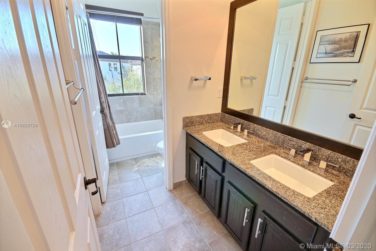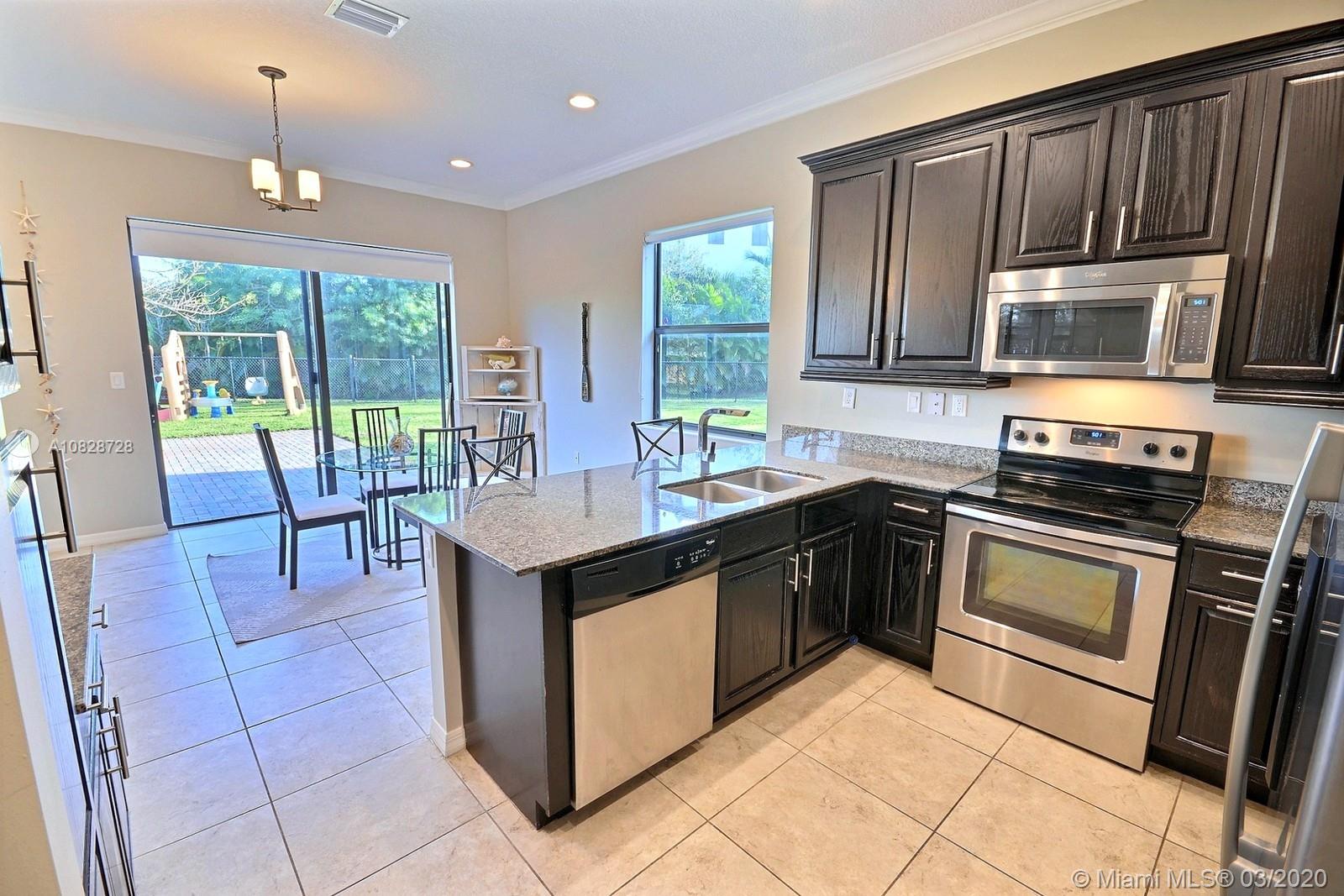 ABSOLUTELY GORGEOUS MODERN MEDITERRANEAN NEWER CONSTRUCTION LARGEST MODEL IN THE COMMUNITY FEATURES KITCHEN COMPLETE WITH WOOD CABINETRY, GRANITE COUNTERS AND STAINLESS STEEL APPLIANCE. SPACIOUS DOWNSTAIRS LIVING AREAS COMPLETE WITH BEAUTIFUL TILE FLOORS, CROWN MOLDING, TONS OF NATURAL LIGHT, AND ACCESS TO THE HUGE PREMIUM FENCED YARD. STUNNING WOOD AND IRON STAIRCASE LEADS TO THE UPSTAIRS LOFT AREA AND BEDROOMS. MASTER SUITE INCLUDES A GORGEOUS MASTER BATH COMPLETE WITH TRAVERTINE TILE AND 2 MODERN VANITIES WITH GRANITE TOPS. 2ND BATHROOM OFFERS A DOUBLE VANITY WITH TWO SINKS. UPSTAIRS LAUNDRY ROOM FOR CONVENIENCE. HURRICANE IMPACT WINDOWS PLUS PANELS. FABULOUS LOCATION INSIDE OF A GATED COMMUNITY NEAR RESTAURANTS, SHOPPING AND HIGHWAYS.