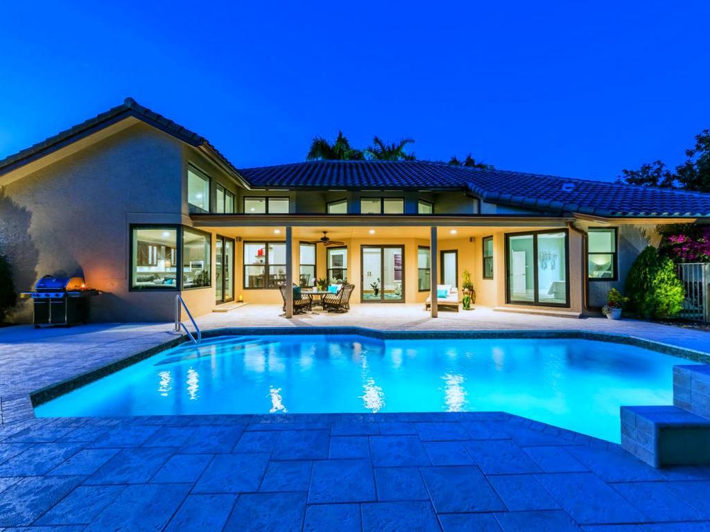 Exquisite 4BD/3.5BA custom residence on magnificent HALF ACRE+ in boutique enclave of Tequesta Lake! Over $400K in renovations in recent years, with meticulous attention to detail, NO EXPENSE SPARED! Front of home overlooks spectacular lake, while resort-like pool w/new twinkling lights sprawls against an expansive fully fenced picturesque park-like yard w/shady trees & private berm! Highest quality IMPACT GLASS! Chefs kitchen with quartz counters, Thermador appliances w/vent hood to exterior, induction cook-top, wine refrig, floating shelves & more! New modern bathrooms, new porcelain flooring, new solid wood doors, motorized shades, all LED lights, Nest ACs, Roof 2011. Oversized custom 2CG w/hybrid hookup, magnificent landscaping & much more! Corp Relocation transfer; Covid19 addendums.