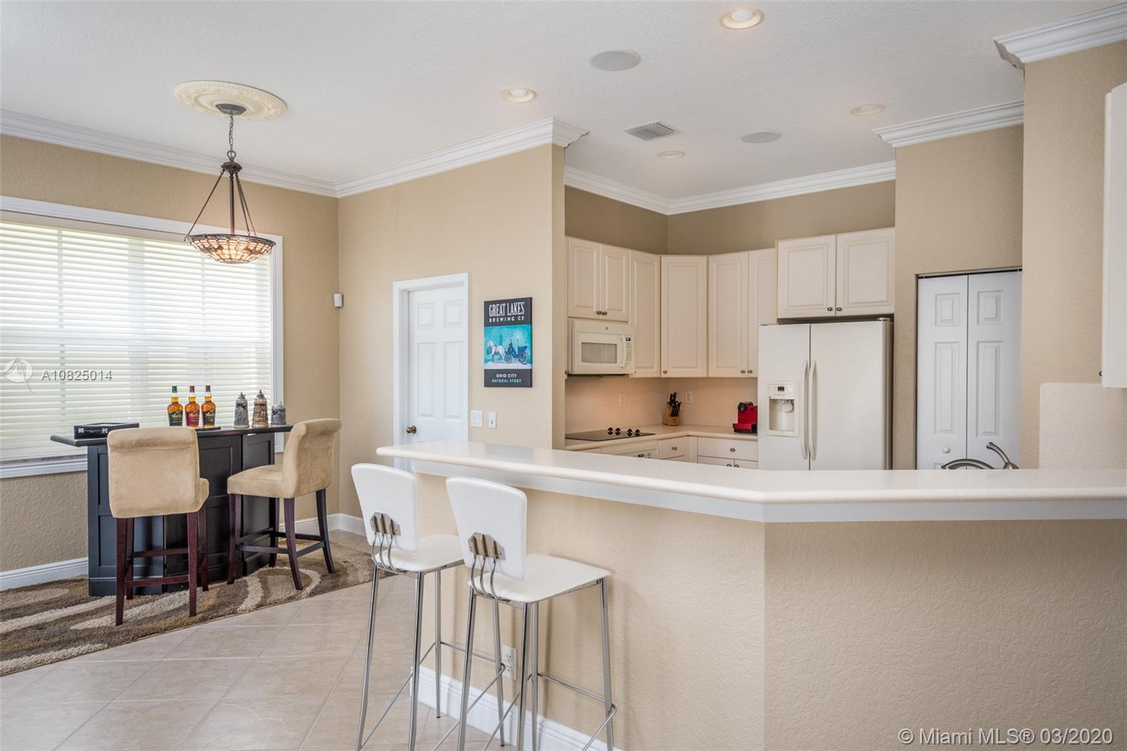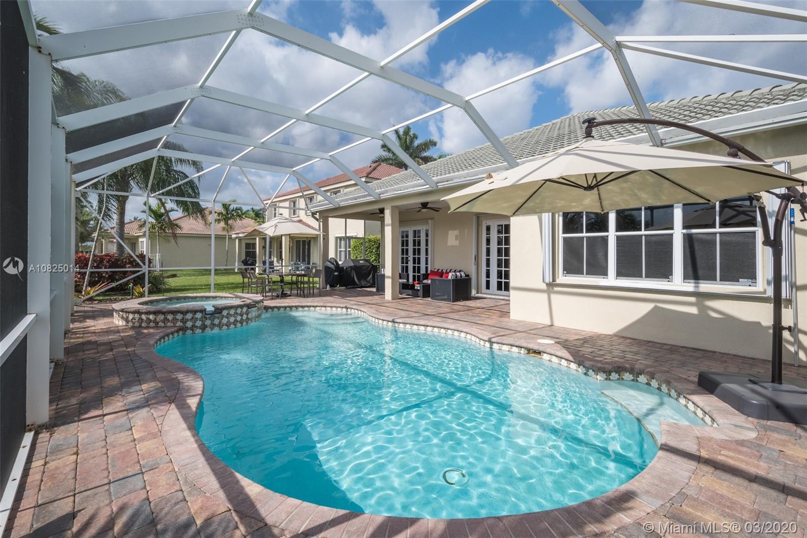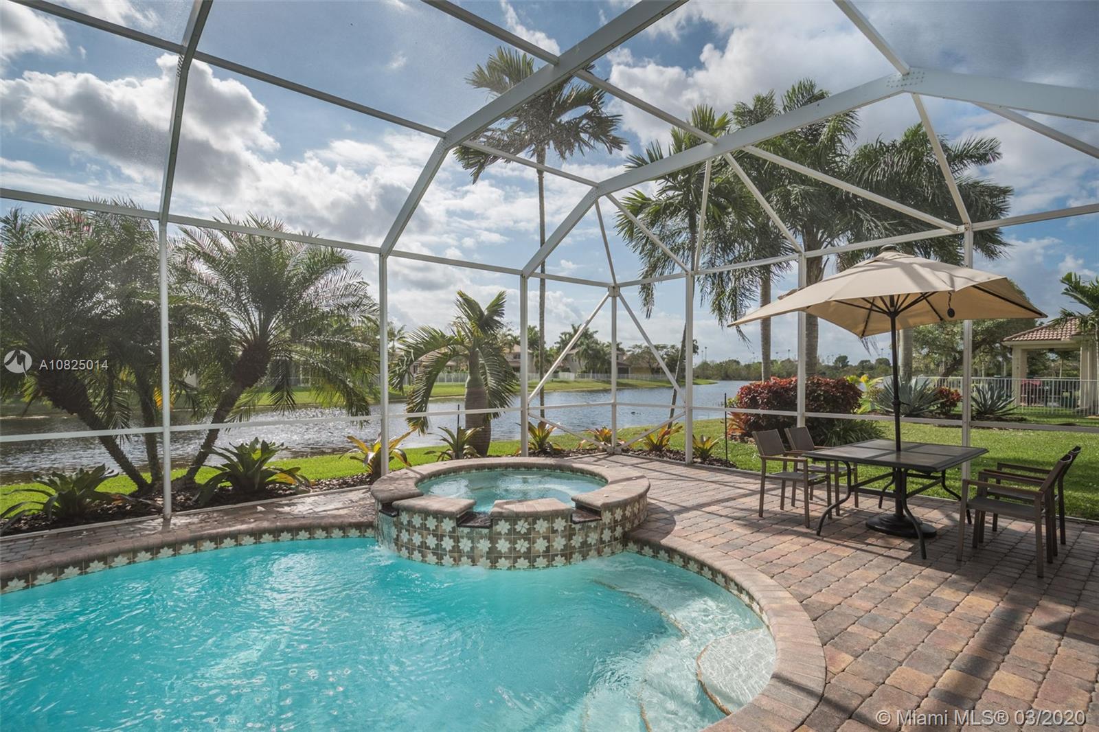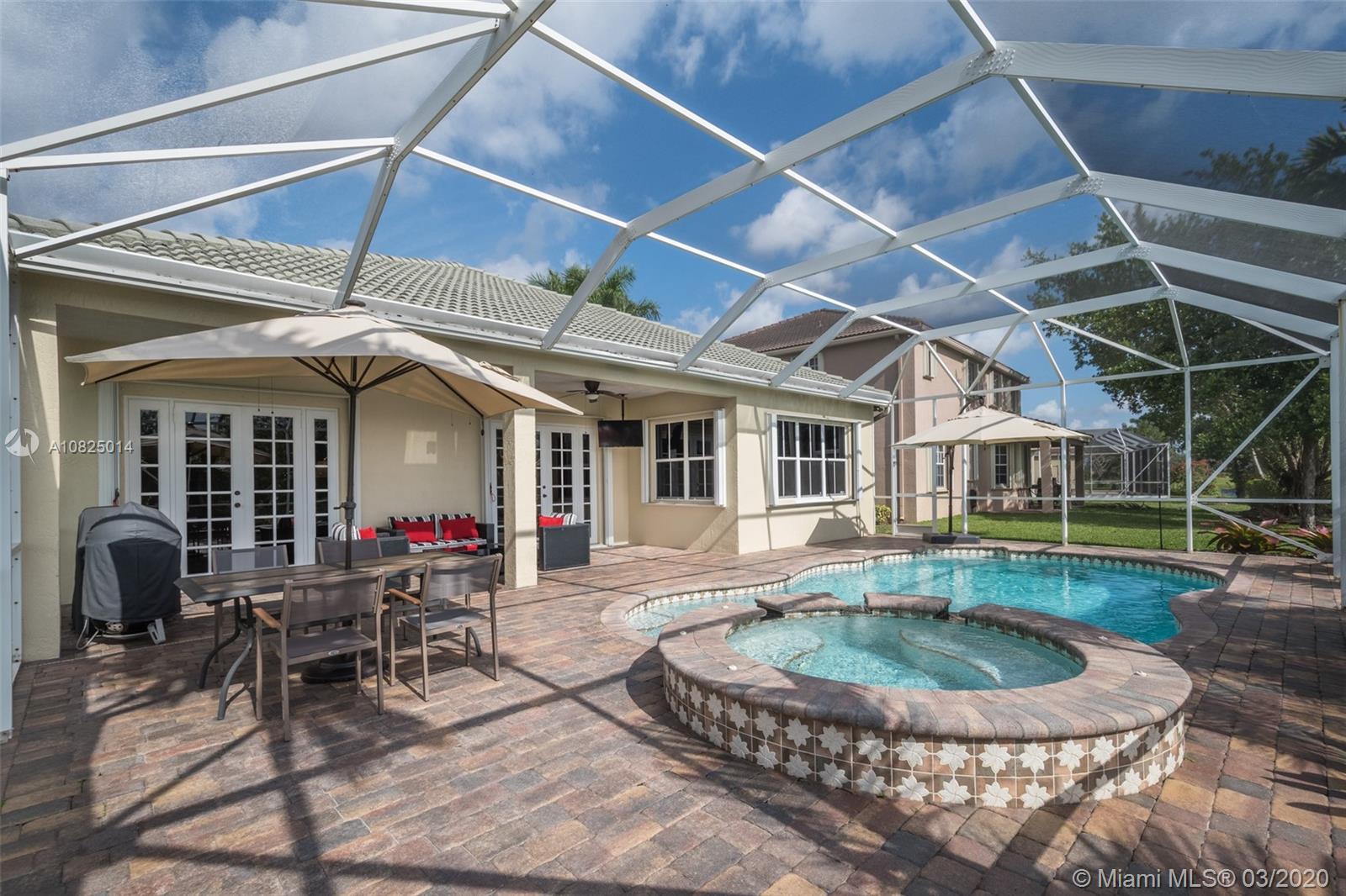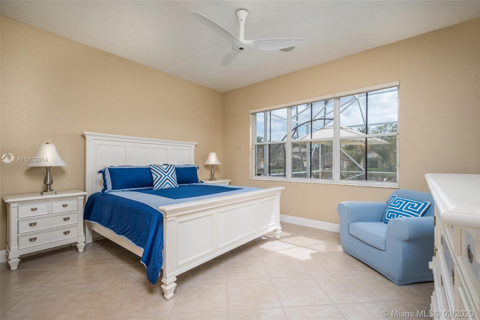 Serene backyard oasis, with pool, hot tub and water views that feels like another living room with the included outdoor tv and furniture. Large french doors that fully open to views of pool and water and create an indoor/outdoor feel in the open floor plan. Professionally tinted windows and doors increase daytime cooling efficiency and privacy. New high efficiency, 2 stage AC and Pool heater (2016). Bright white crown moldings and raised baseboards against neutral wall coloring create a resort like feel. Accordion shutters on windows and doors allow for low stress hurricane prep.