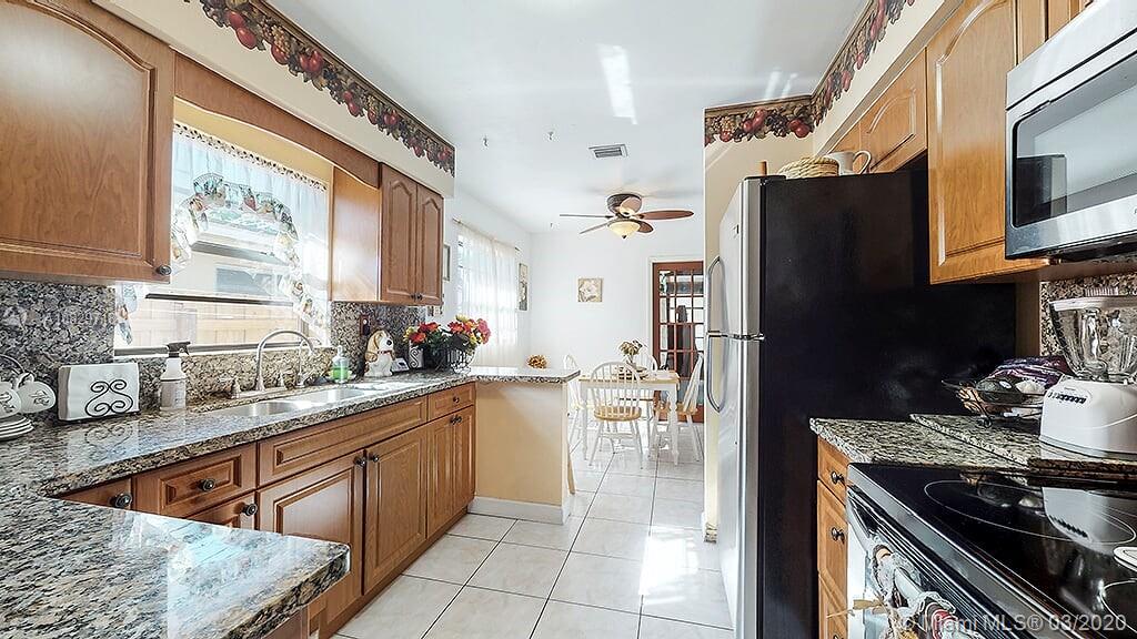 Welcome Home !! Your search is Over... Beautifully Maintained home is move in Ready !! Open floor plan features, 3 large Bedrooms, and possibly one more, 2 full Baths, New Roof, New A/C, newly Painted, Ceramic Tile throughout. The Newly updated Kitchen features Gorgeous Marble Counter tops, New SS appliances, a breakfast bar, and a dining area to share great food and family fun. Spacious family room is perfect for a large family or Entertaining family and friends. The Covered porch is ideal for enjoying Florida summers as it overlooks the private fenced-in backyard. The large yard includes 2 storage sheds and is great for little ones and pets to play. You can't beat the Convenient location!! Don't miss this one - it won't last long!