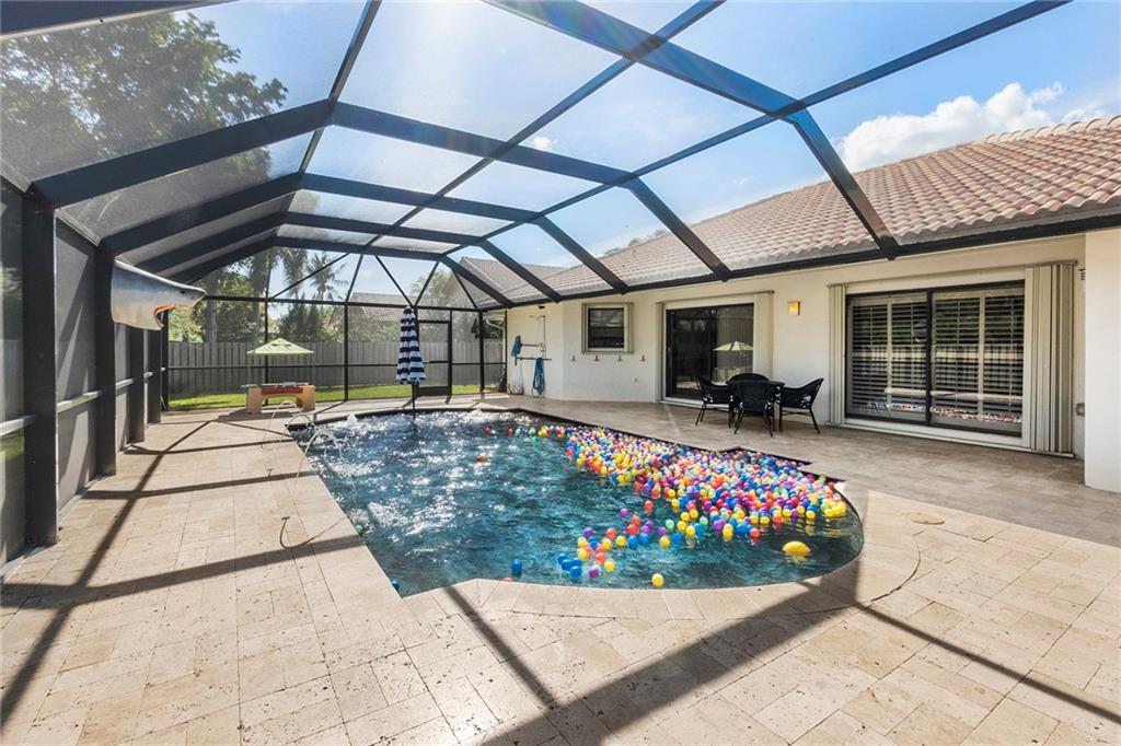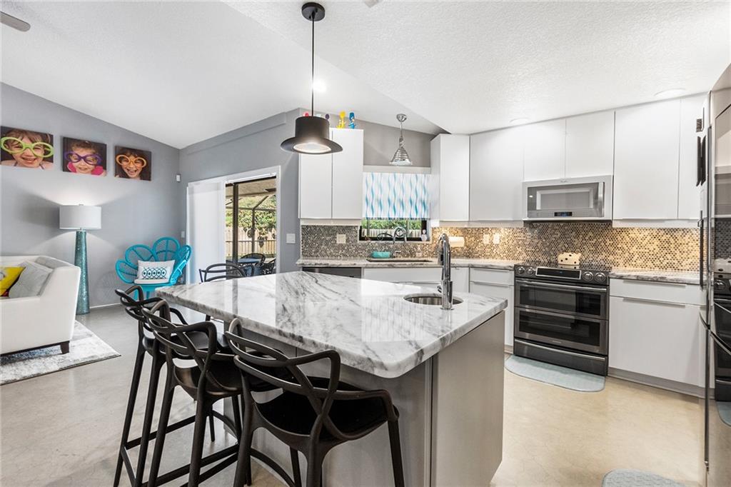 Move in ready!Completely remodeled modern home. Polished concrete floors, new white kitchen with quartzite countertops. Brand new graphite appliances with smart refrigerator. Designer bathroom finishes. Plantation shutters and custom solar shades. Impact etched front door and accordion hurricane shutters throughout. Completely refinished & remodeled pool with fountains and beach step with umbrella stand built in. Travertine decking with new screened enclosure. A/C less then 2 yrs old. Inside laundry room! Community features a pool, tennis courts, pickle ball courts and access to the Ridge! Top school district! Centrally located with easy access to major highways.