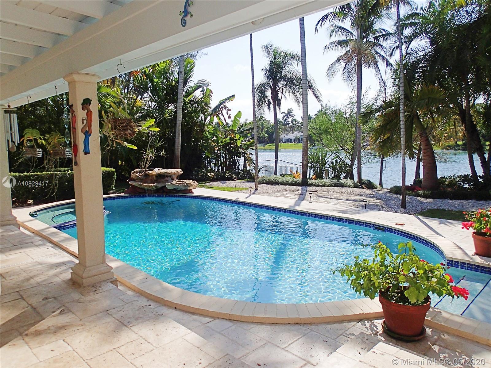 Lakefront home in desirable Village of Pinecrest. This spacious 4-bedroom 2-bathroom pool home with recently renovated bedrooms and updated baths offers gorgeous lakefront views and sunsets beyond your lush tropical landscaping. Enjoy walking through your own private botanical garden along shell lined paths to over 140 feet of private lakefront lined with cap rock and mature cypress trees. Entertain guests and family under the oversized covered patio by the pool & waterfall. Brand new impact front door, new stainless-steel appliances and granite countertops complete the kitchen which features pull-out shelves in every cabinet. 2 car garage, laundry room w/sink, formal dining, formal living and a cozy fireplace for those cooler Miami nights. Please view the Matterport 3-d tour.