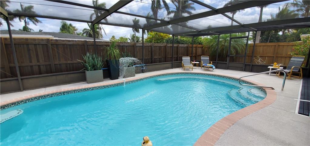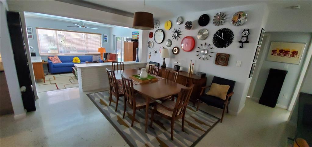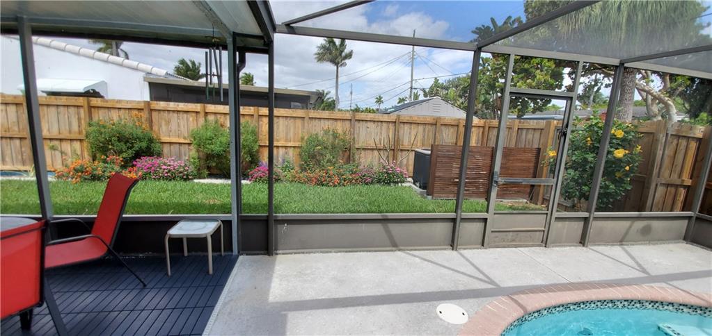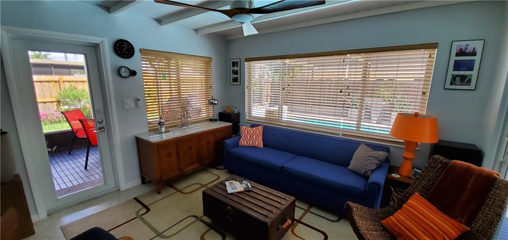 This beautifully remodeled Park East 2/1 home features new kitchen w/high end stainless steel appliances including convection oven, refrigerator w/dual ice makers and quartz countertops and loads of storage, Remodeled bathroom with Italian tile, New tankless water heater, New front load washer/dryer with steam. Restored terrazzo throughout. Circuit breaker. New meter and Circuit breaker w/ additional grounding added 2019. 240v exterior plug for electric car charging (charger does not convey) Newly resurfaced pool with new water tile and new pool heater. Impact windows and doors. Walking distance to Publix, Target and restaurants. Easy access to major highways. Just minutes from the the beach. 4 Swann security cameras, hard wired. Privacy fence. Storage Shed and built in storage in carport.