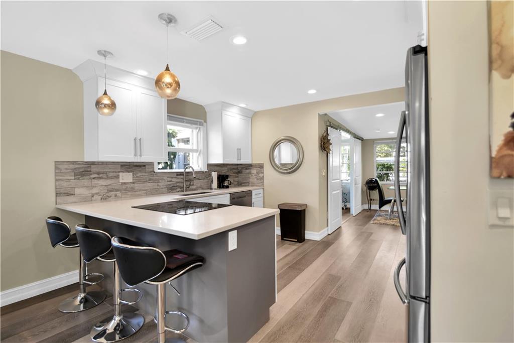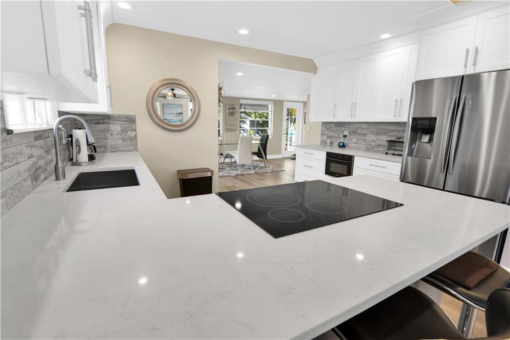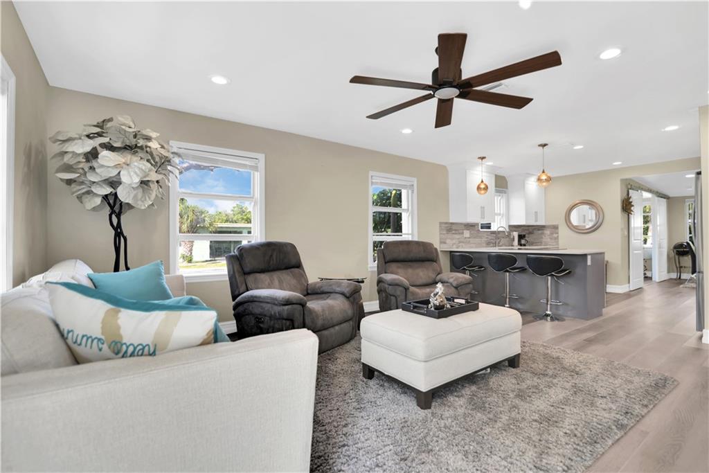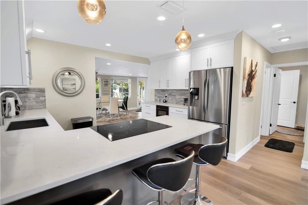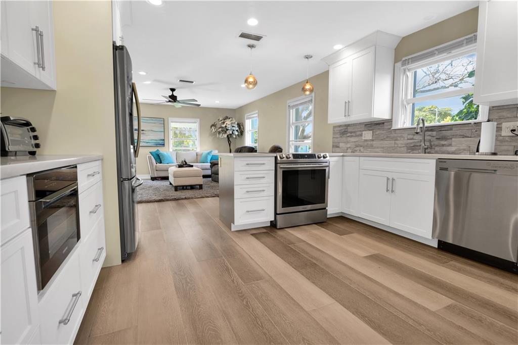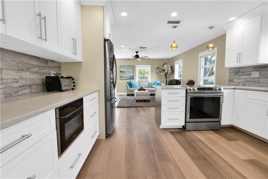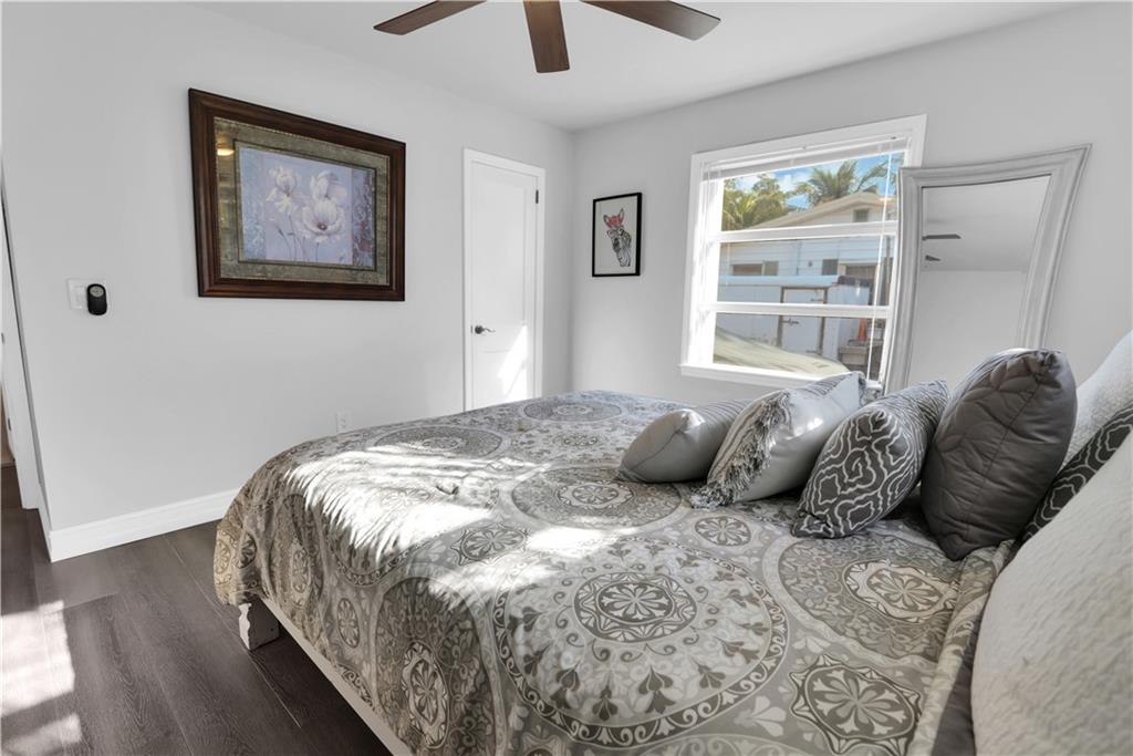 Stunning GEM with lots of room for entertaining your family and friends! This 3/2 single family home is situated on a corner lot in Old Pompano. Historically quaint exterior with completely remodeled interior that delights all the senses! Brand new flooring throughout, quartz counter tops and top of the line appliances in kitchen. Barn doors add a unique look to the bedroom. Both bathrooms are fully redone with new tile laid in showers. Master bath features a spa tub as well as double sinks. New roof currently being installed. Large laundry room with full size units. Lush mature landscaping with mango and starfruit trees, as well as plenty of room for a pool. Accordion hurricane shutters on all windows. Very convenient location, yet quiet and peaceful. Your own little piece of paradise!