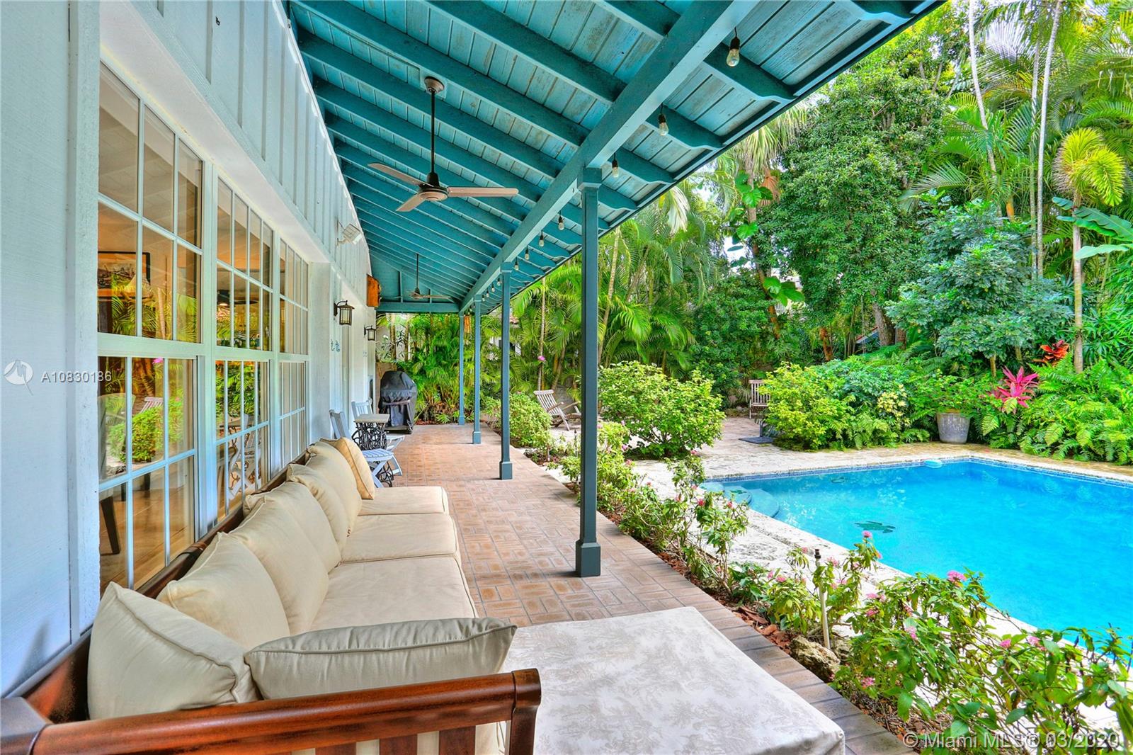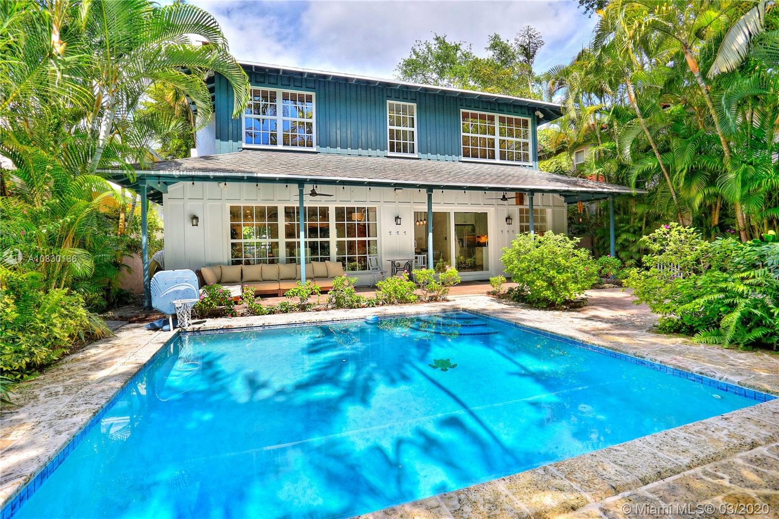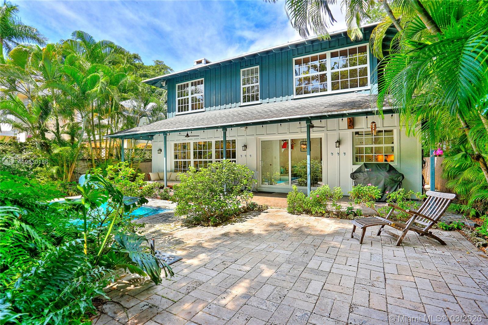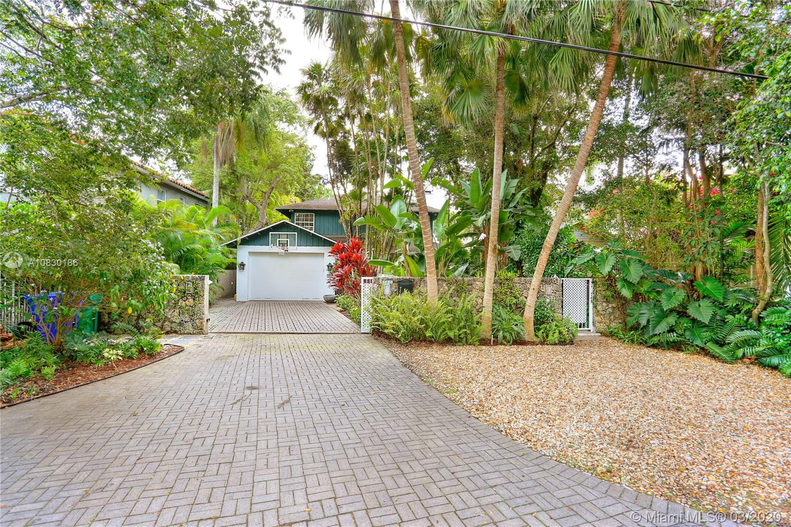 Welcome to this tropical home located in the desirable South Coconut Grove neighborhood. This very private gated two-story house is nestled in a verdant lush professionally landscaped patio and backyard. Beautifully remodeled with spacious living areas, gourmet eat-in kitchen and lovely views of the pool area and vegetation that provides a serene ambiance. One bedroom and full bathroom downstairs. Upstairs you will find the large master suite with sitting area, office nook and en-suite bathroom, as well as another bedroom with an en-suite bathroom. Large garage and ample parking outside. Newly installed hurricane impact windows and doors throughout. Bike or stroll to the Grove’s boutiques, cafes, bay front parks & marinas. Many of the best private schools within walking distance.