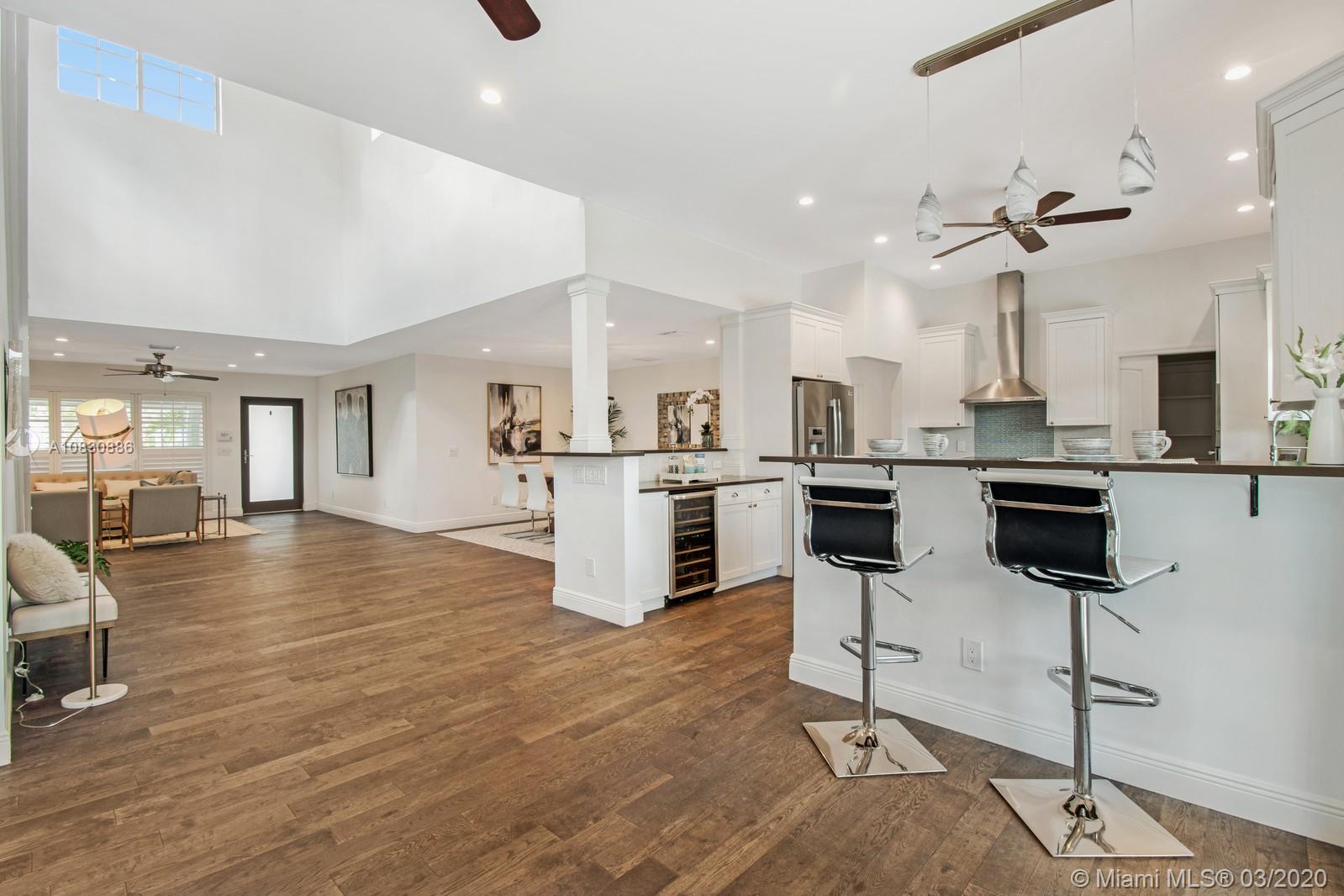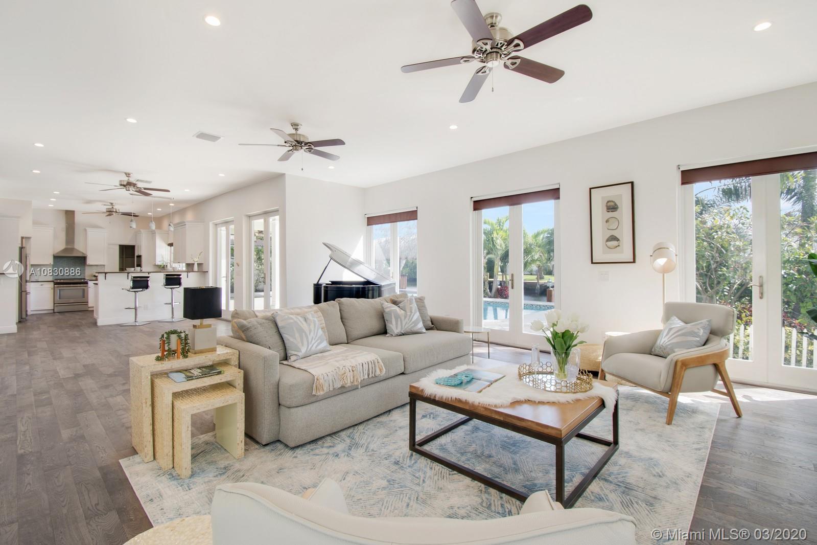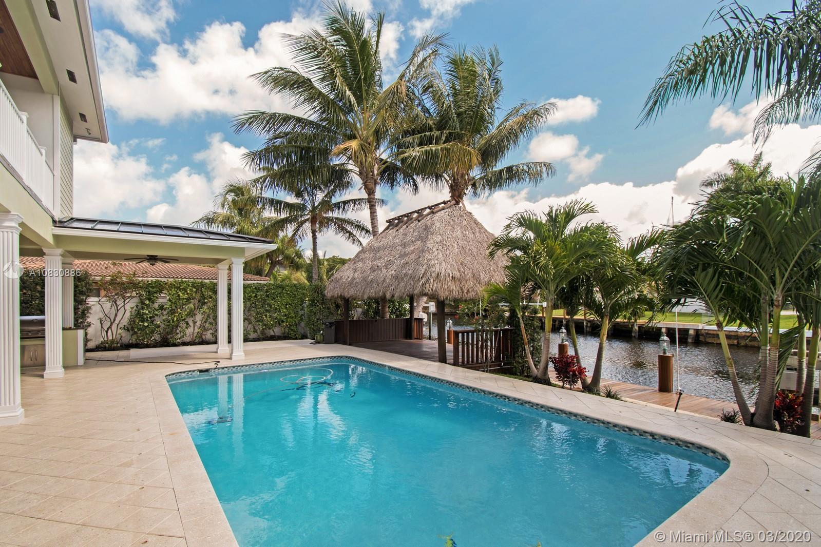 This island and coastal inspired waterfront, cul-de-sac home was completely rebuilt from the slab in 2014/15 and features a large open floor plan with 10’ ceilings with a max height of 22’ in the entrance area, 4 bed & 3.5 bath + Loft. The master bathroom features an enclosed shower, Jacuzzi tub and commercial grade steam room. Large triple lock hurricane rated doors and windows throughout and automatic whole home natural gas generator. The oak wood flooring gives the home a warm feeling. LED lighting. Mature tropical landscaping sets the tone for a relaxing outdoor experience featuring a tiki hut, heated pool and boat dock w/ a 10k lb boat lift. The outdoor kitchen features a nugget ice machine and plumbed natural gas to the grill. Custom aluminum roof and insulation. Artistic pavers.