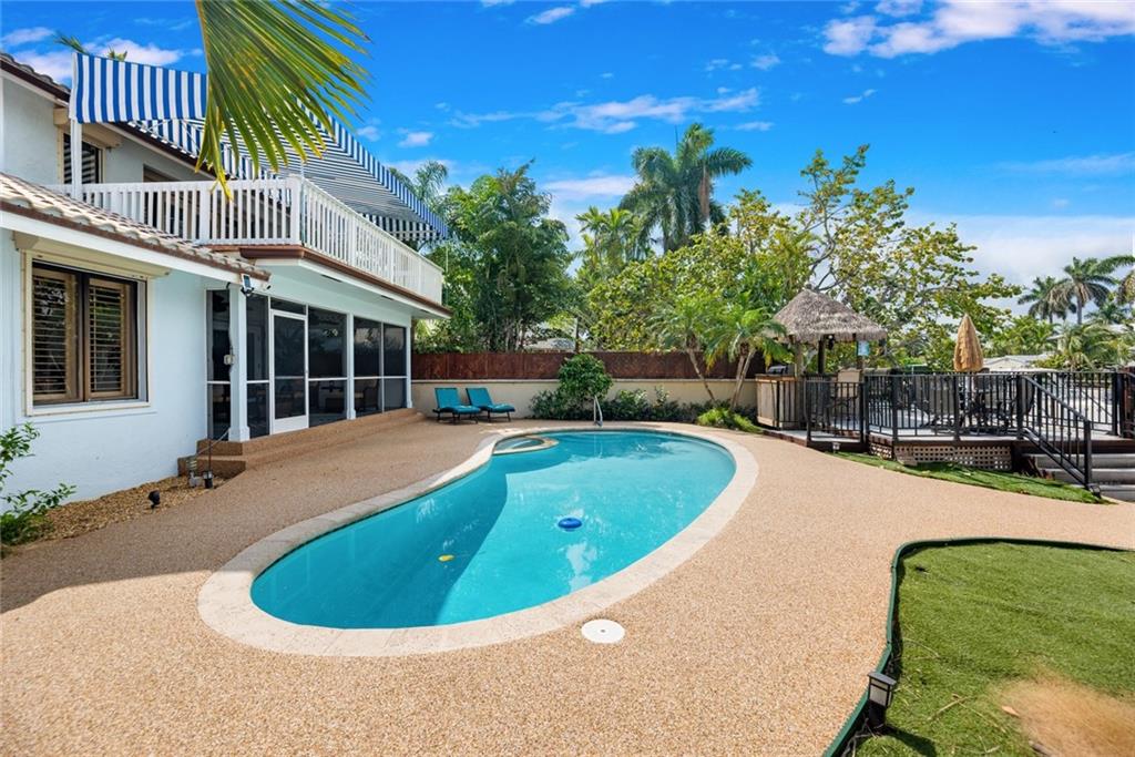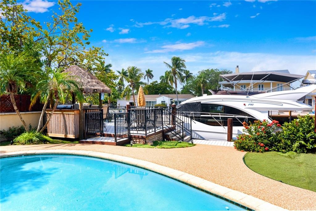 Fabulous Opportunity arrives in sought after Guard-house gated Riviera Isles! Priced to Sell and Perched over 8' above sea level, a gated, tasteful home welcomes you with a Casual Beach Vibe, adorned with light wood vaulted ceilings and a crisp, clean updated kitchen. 2 beds /2 baths on the ground level and a spacious Master Suite up with large terrace, walk-in closets, spacious bath and serene views of the pool, canal and delightful sunsets. Inviting and expansive outdoor area with covered patio, pool and waterside chickee hut with grill area. This home lives large, but rests perfectly on 50 ft of deep water ocean access, just minutes to Port Everglades and allowing for up to 40' of watercraft. A short stroll to the beach and minutes from Las Olas and Booming Downtown Fort Lauderdale.