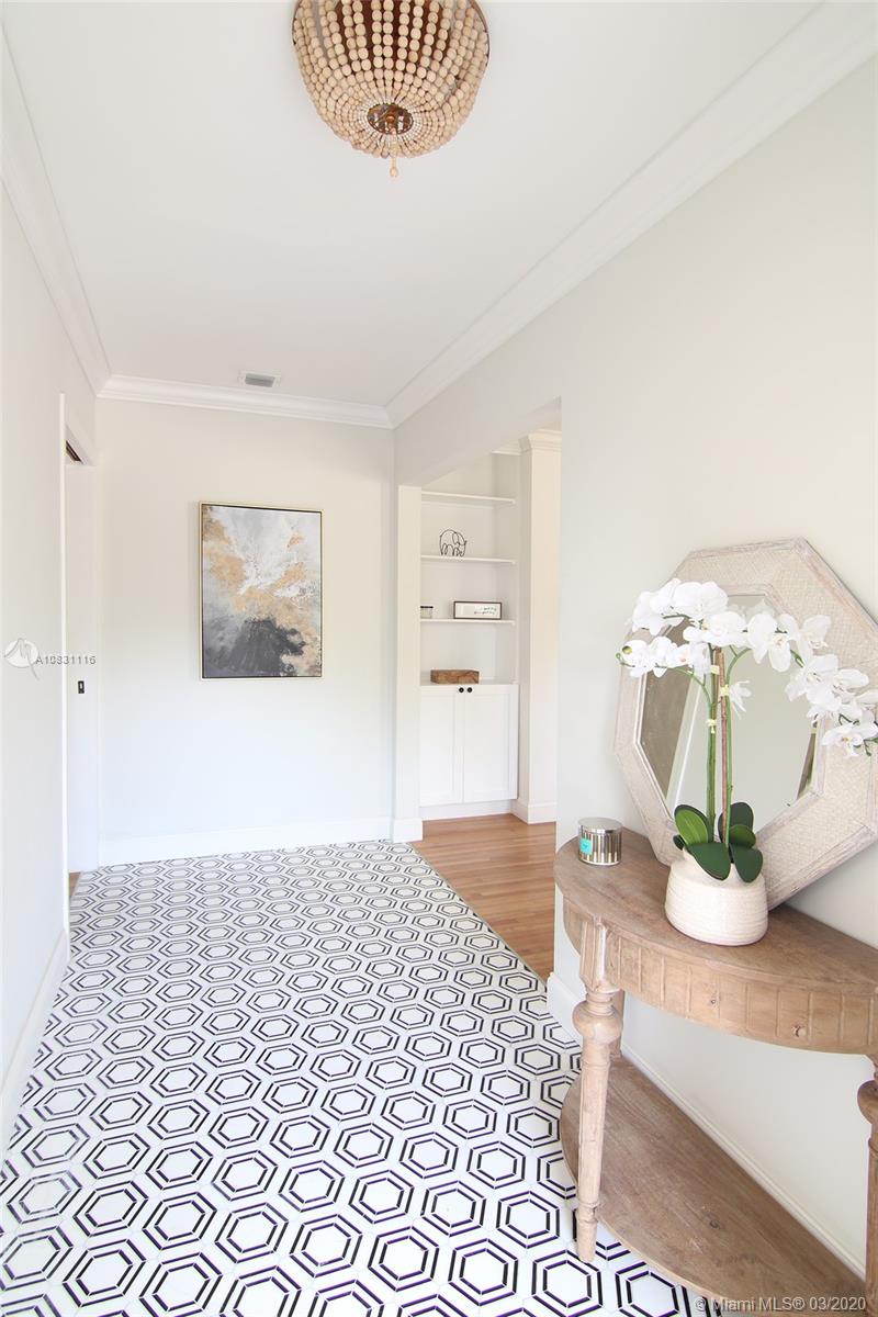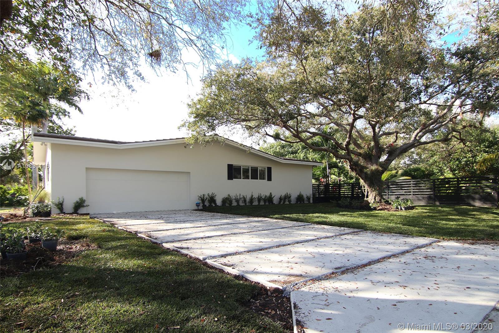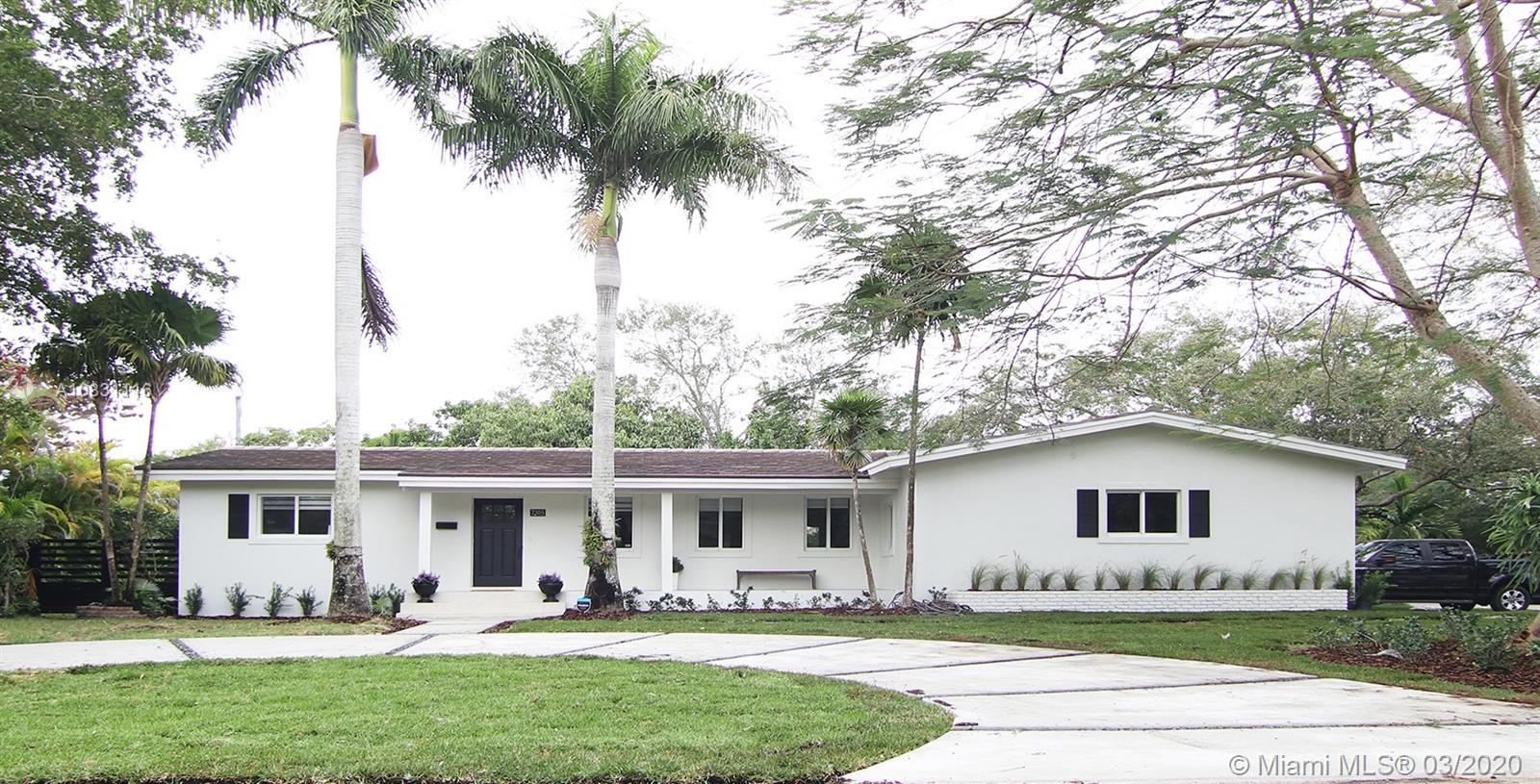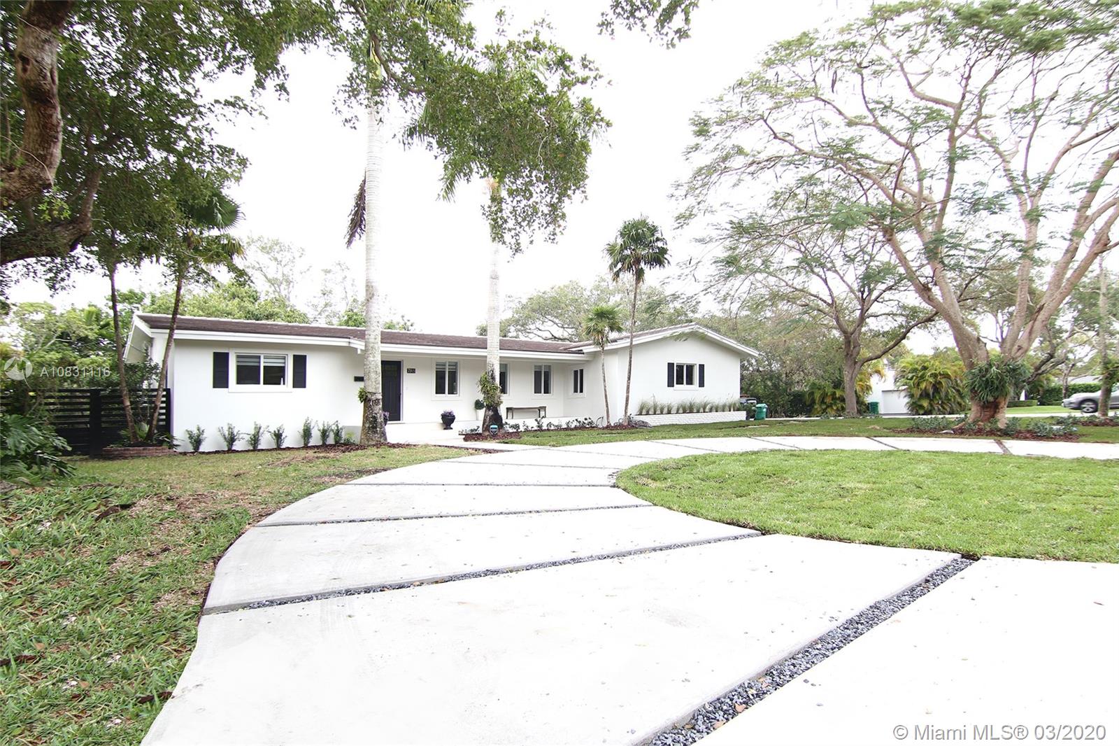 This gorgeous remodeled 4/2 pool home offers a split floor plan with an open layout. As you step in you'll be welcomed by marble tile accents and a beautiful built-in with a fireplace. The kitchen features quartz counters and stainless-steel appliances. The master en-suite offers a large walk-in closet and a bathroom with double sinks and direct access to the pool. This home has gorgeous re-finished hardwood floors throughout and ample storage space. The large covered terrace is great for entertaining with a cabana bathroom and a brand new outdoor kitchen. Brand new tile roof and concrete driveways. Impact windows and a double car garage. This home sits on a corner lot on very quiet streets and it's close to schools, shops and restaurants. Designed by Porta Negra.
