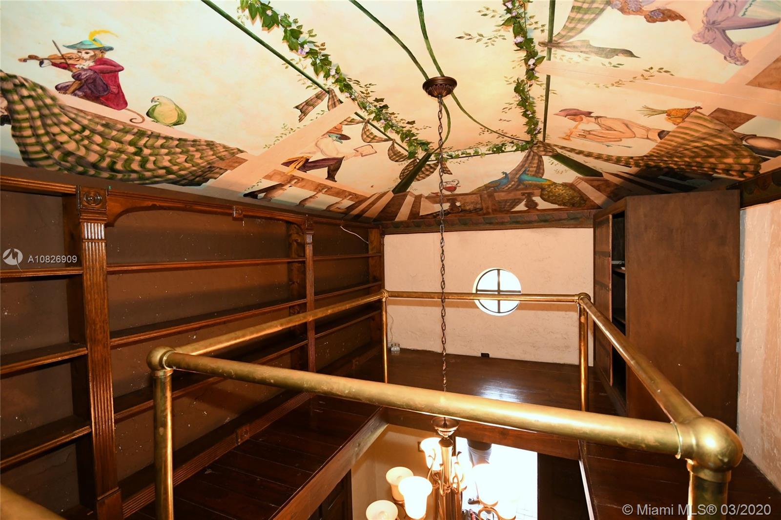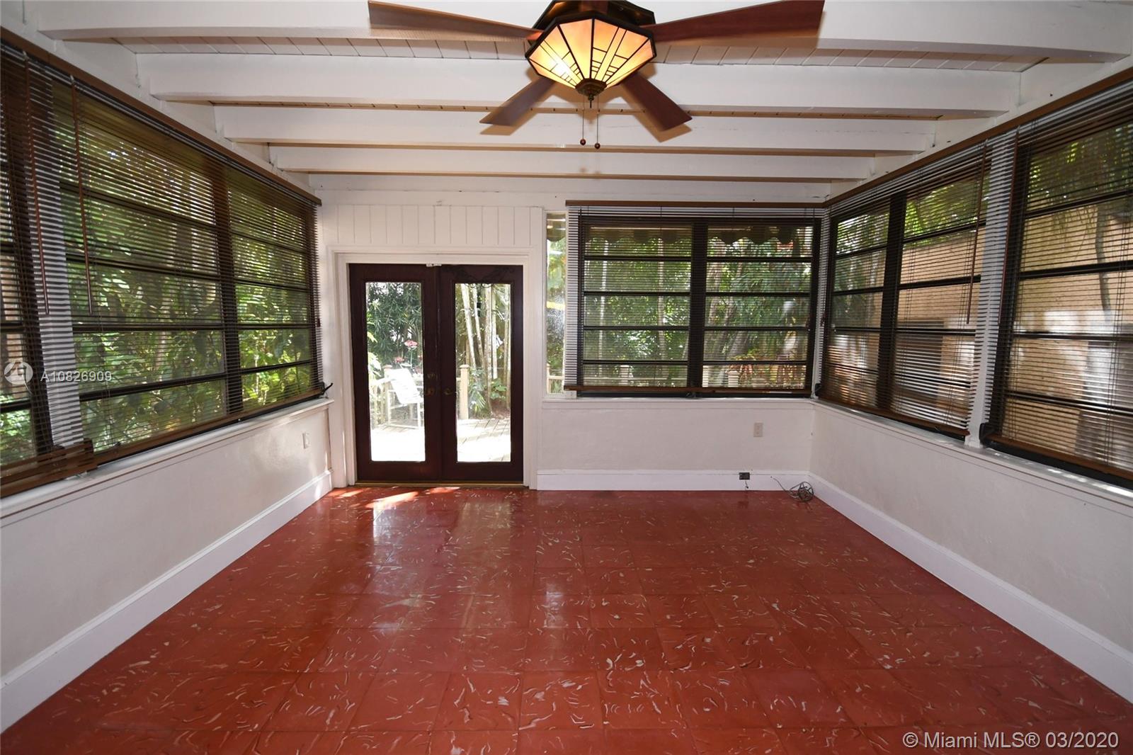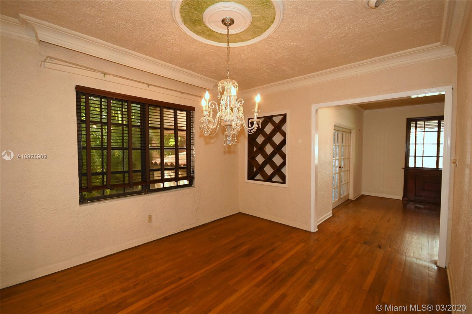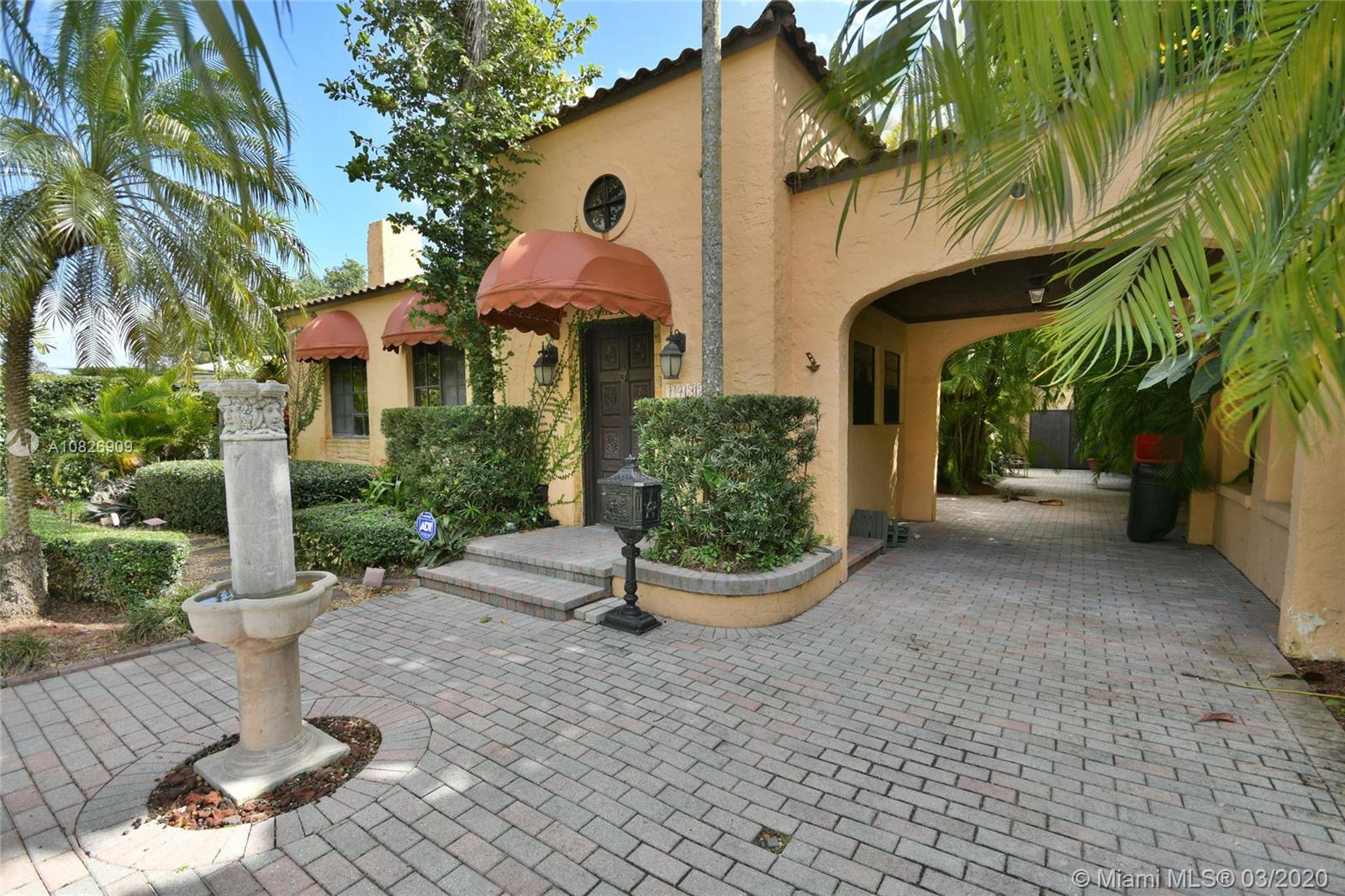 1930 Old Spanish style house full of old-world charm, elegance and ambiance. Located on a tranquil Coral Gables tree-lined street within walking distance to UM. This 2/2 (tax records indicate 3/2) has original tumble stoned floors in the foyer. Loft library with hand-painted mural, formal living room w/ hard wood floors, wood burning fireplace framed by custom made wood book shelves, formal dining room, updated kitchen with stainless steel appliances, large bright family room that leads to a deck and lush tropical garden perfect for entertaining. Covered carport and detached garage which can be turned into an office, art studio or play room. Just perfect if you are just starting off or looking to down-size. 1 Yr. Home warranty. Roof repaired Oct. 2019 w/ 5 yr. warranty.