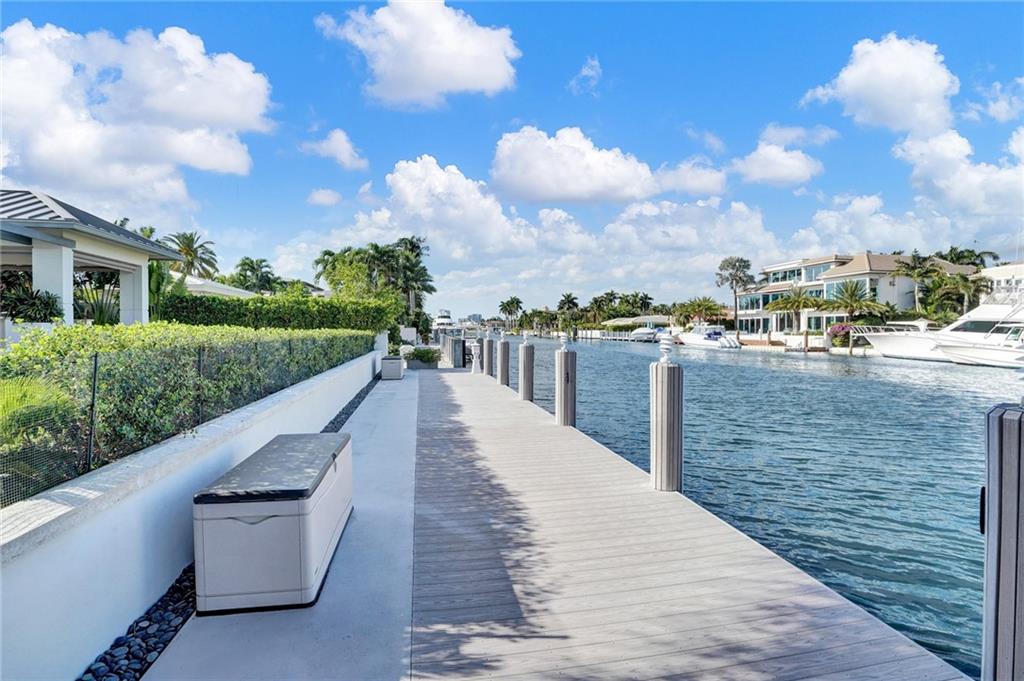 Spectacular one-story coastal modern home on one of the most exclusive waterways in Harbor Beach. Residence equipped with impeccable finishes, thoughtful interior design, 105 ft of water frontage on +/-140' wide canal, boat lift, and Azek composite dock. Eat-in kitchen with high end appliances, custom cabinetry and water views. Large master bedroom with vaulted ceilings, walk-in closet, dual vanities & soaking tub in master bath. Home built with NanaWall folding doors which seamlessly blend with the outdoor living area. Home also features lush landscaping, pool, spa, cabana bath, & outdoor summer kitchen with gazebo to enjoy the beautiful breezy days and nights. Private Harbor Beach Surf Club with 300 ft of beachfront & private marina membership available.
