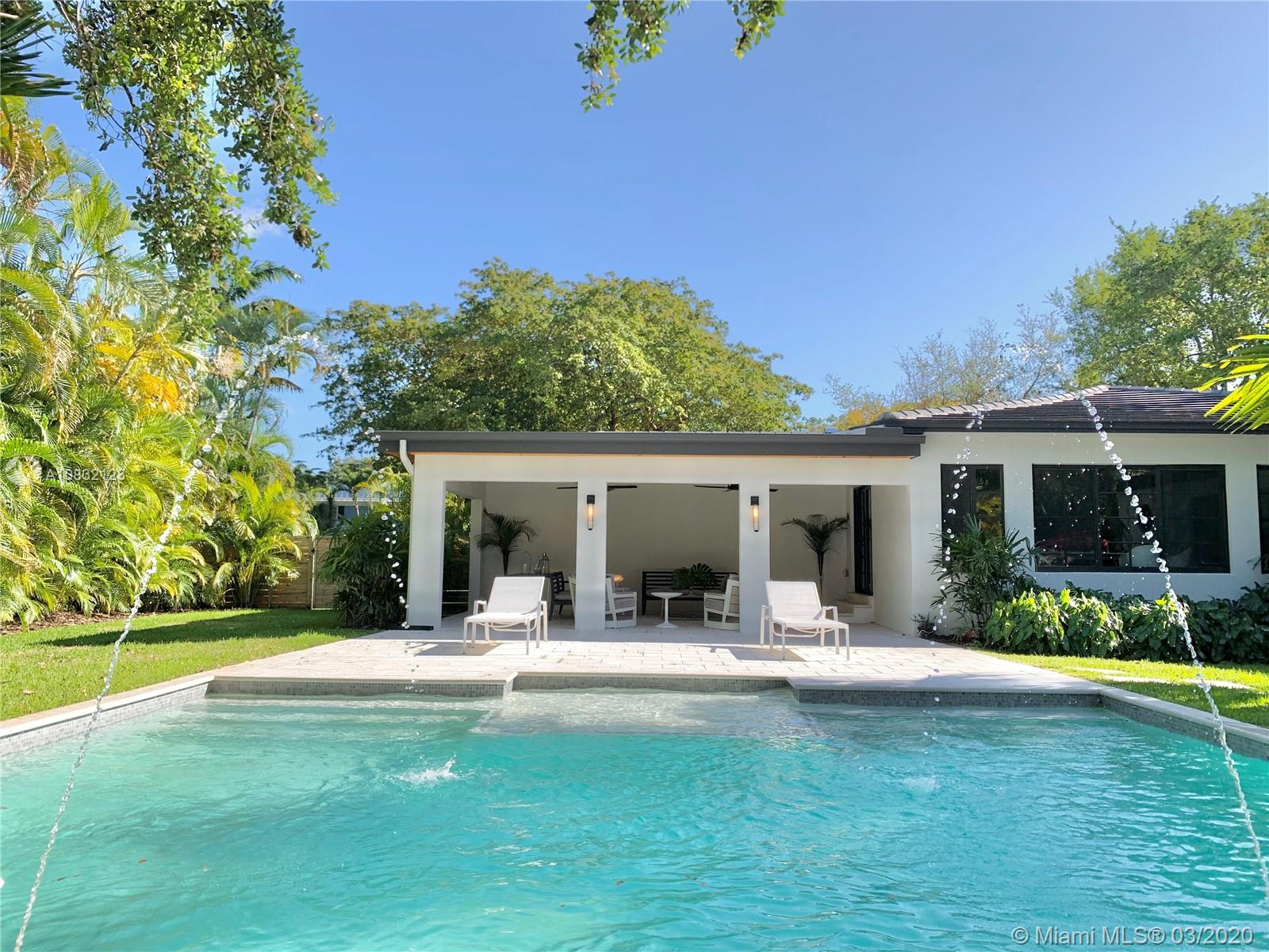 MIAMI SHORES MODERN OASIS custom designed for INDOOR/OUTDOOR LIVING & ENTERTAINING. Situated on sprawling 1/3 acre DOUBLE LOT on one of most COVETED BLOCKS, this 3BR/3.5BA, ~2,200SF home (TAX ROLL SF NOT ACCURATE) just completed total gut remodel by renowned designer/developer team. MAGAZINE WORTHY highlights include 3 LARGE EN-SUITE BEDROOMS, custom vanities & wall treatments, DESIGNER KITCHEN w black SS appliances & custom cabinetry, OPEN PLAN great room, vaulted cypress wood ceiling, large format porcelain floor, EXPANSIVE COVERED PATIO doubling as OUTDOOR LIVING ROOM w lighting/fans, elegant ARCHITECTURAL CUSTOM POOL w tanning platform/bench/deck jets, mature landscaped gardens, new sprinkler system, NEW IMPACT WINDOWS & DOORS, NEW TILE ROOF/fence & septic. URL LINK/YouTube FOR VIDEO.