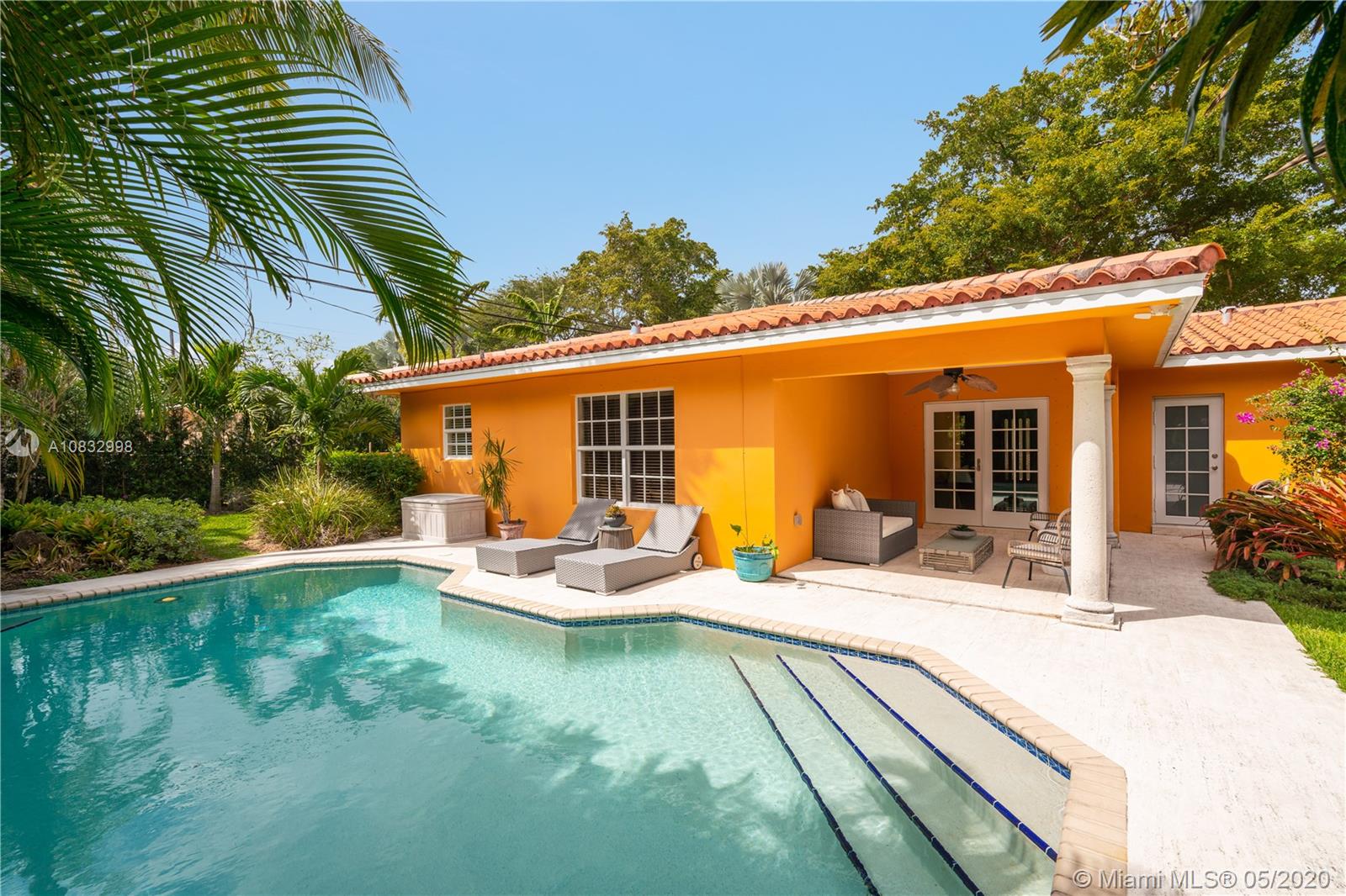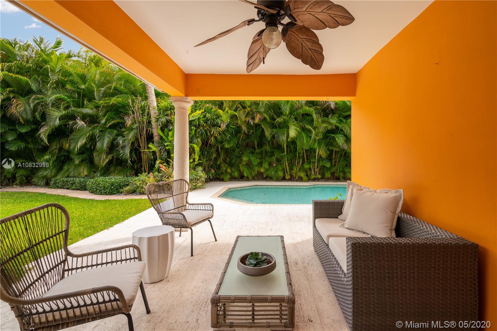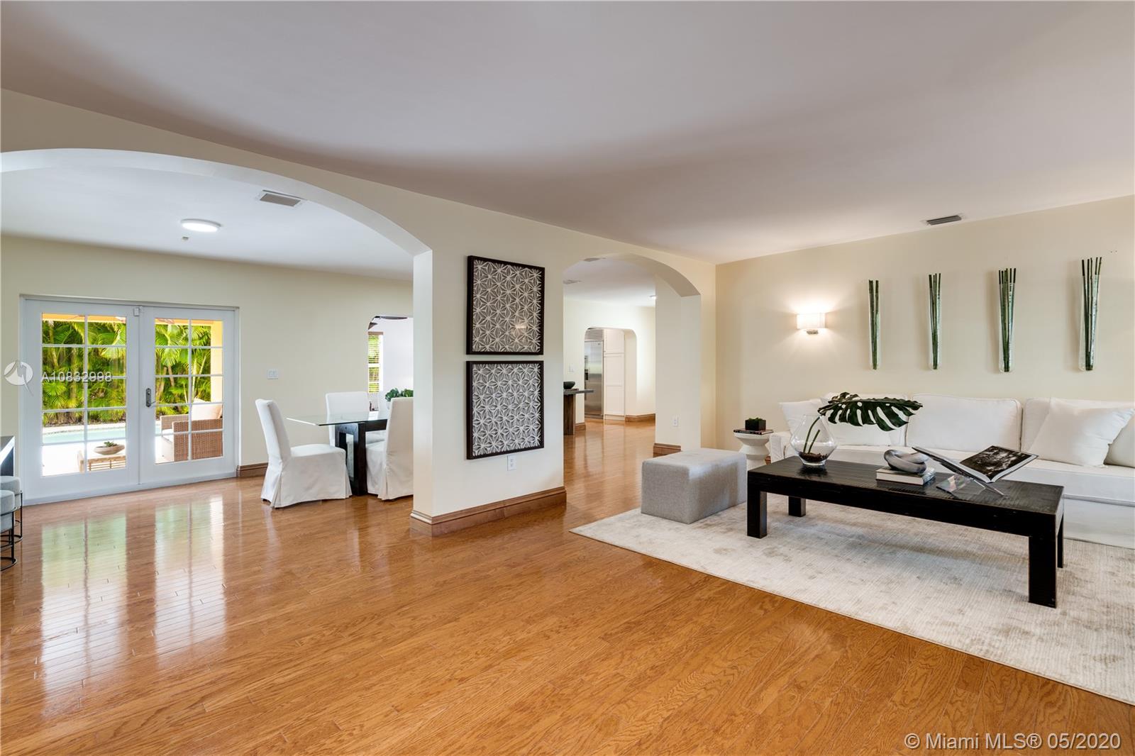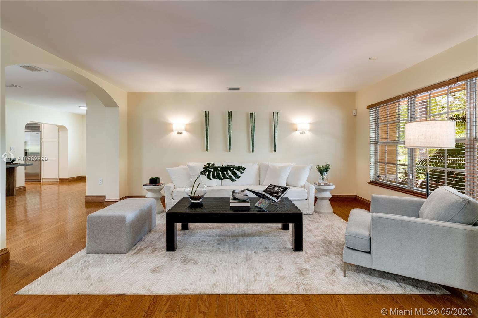 Captivating Coral Gables home on 10,500 lot exudes charm on tree-lined street. Lush landscaping and covered portico welcome you into the formal living room which boasts wood floors, arches, and bar area. The family room, bathed in natural light, is a great spot to unwind. Steps away, you’ll find a quality, remodeled kitchen with custom cabinetry, all stainless steel appliances and Sub Zero refrigerator. Not to be outdone, the master bathroom renovation and custom closet hint at the thoughtful updates made throughout. Make your way outdoors and enjoy the tropical setting of your pool and patio area. Impact windows, newer washer/dryer, and spacious 2-car garage make this move-in ready home a true gem. A Very Special Home.