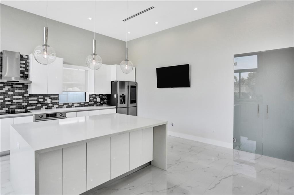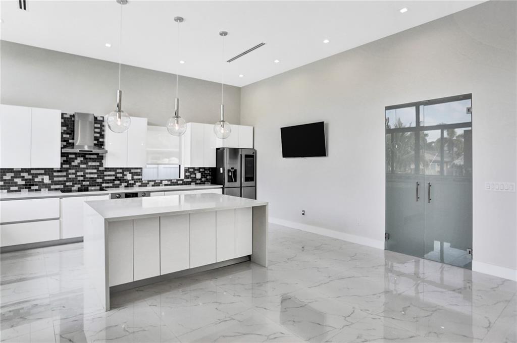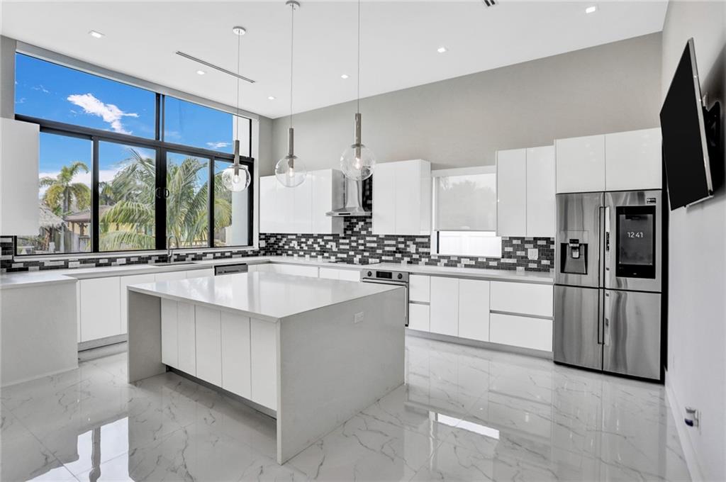 Stunning Brand NEW Home. Ultra Modern 4 Bedroom / 3 bath home features an open concept with split bedrooms, 13 Ft ceilings with all impact windows, marble floors, 2 car garage, in-ground pool on deep water with ocean access. Contemporary finishes with all high-end materials, fixtures, and appliances. A hidden gem in Dania/Fort Lauderdale. in the kitchen with a smart fridge and other smart home options included.