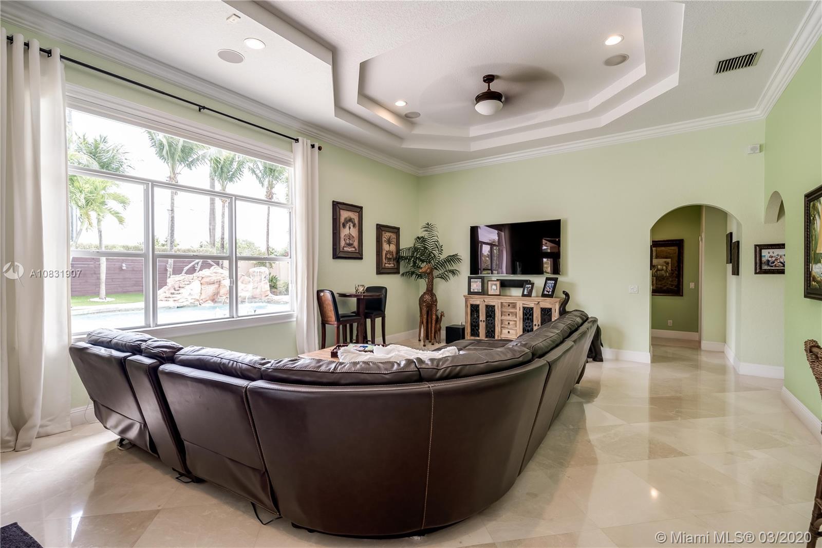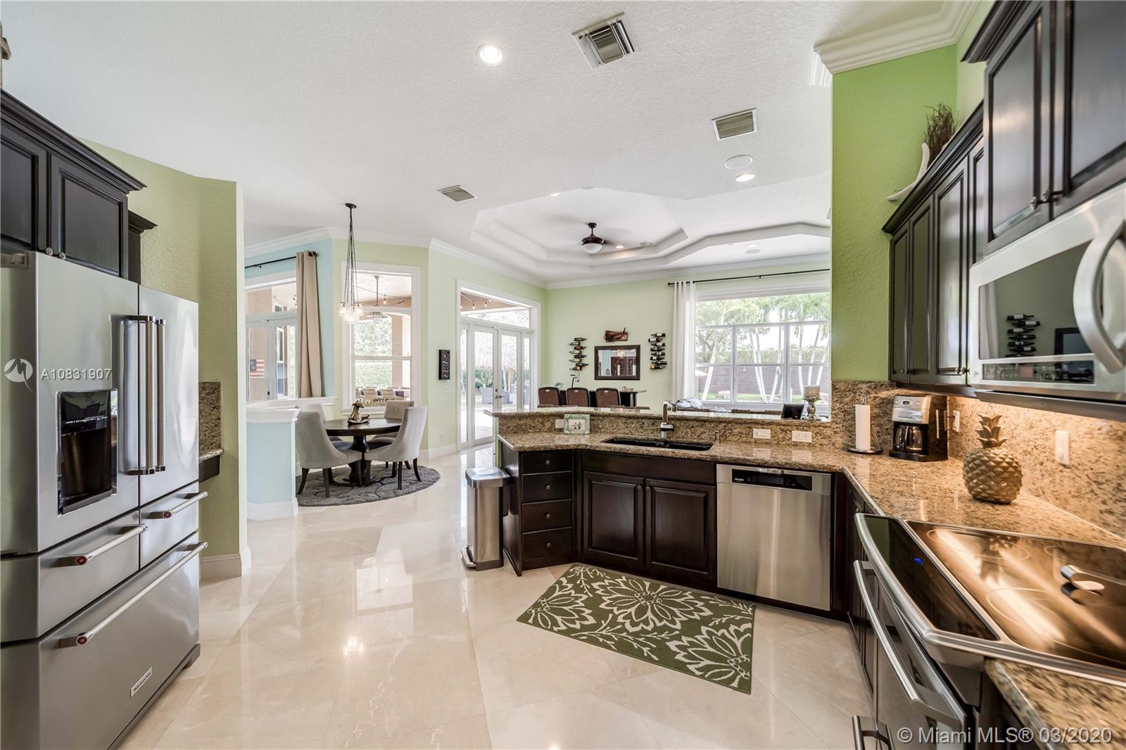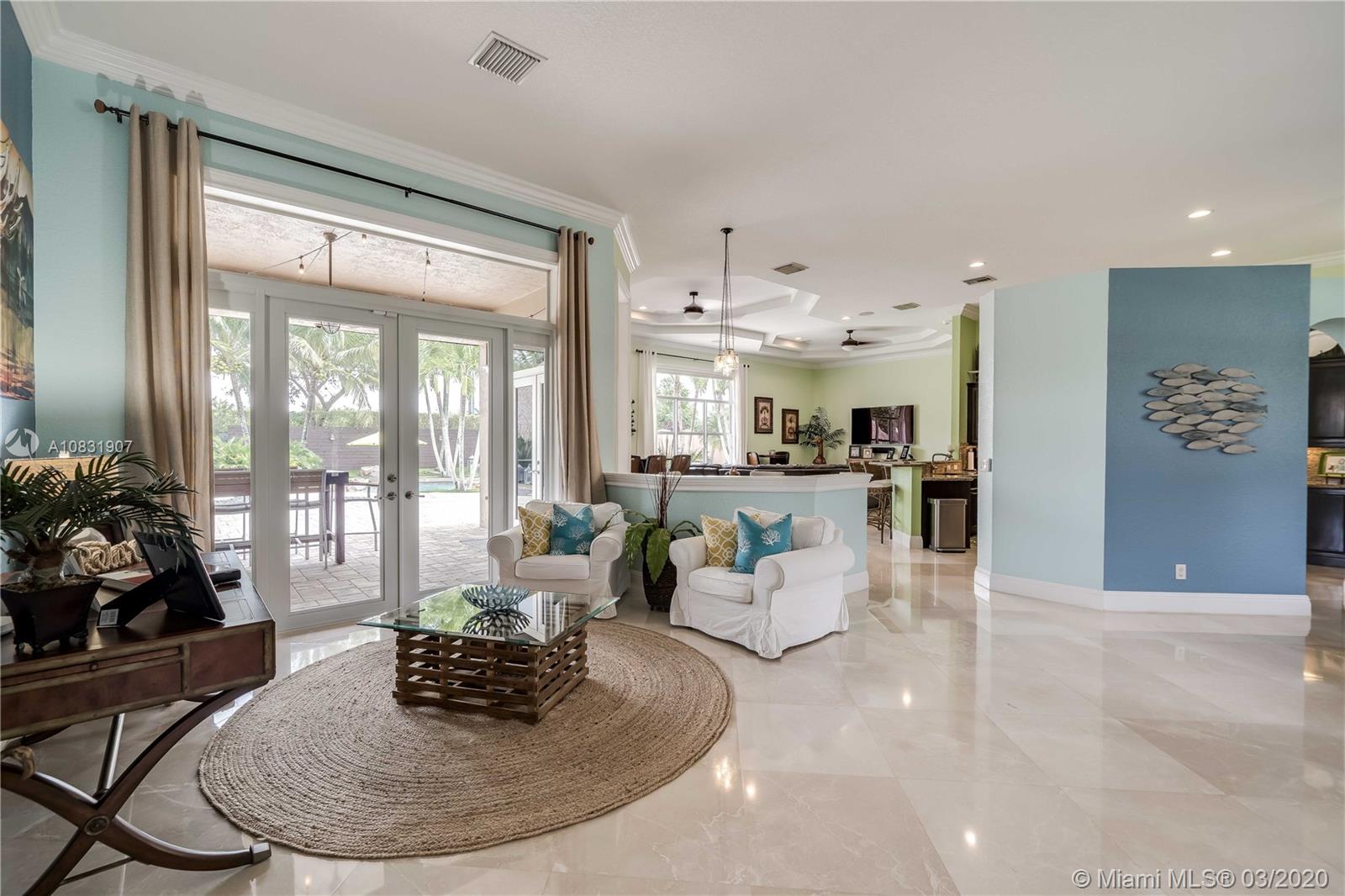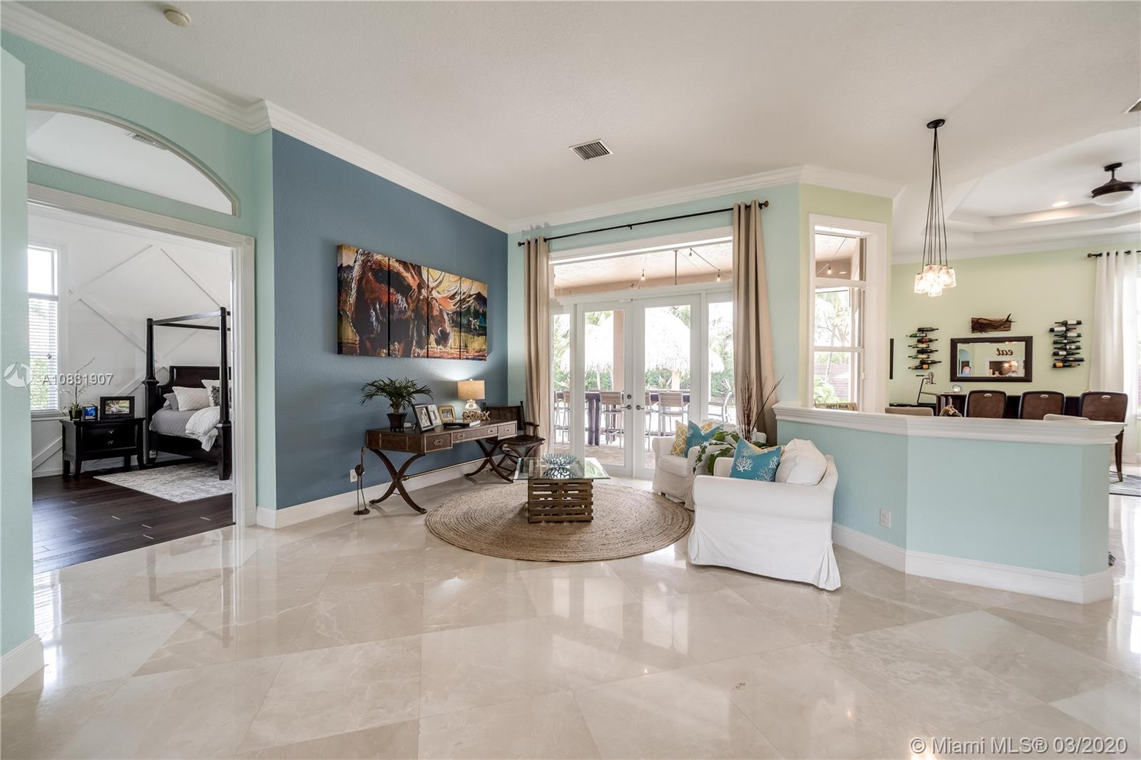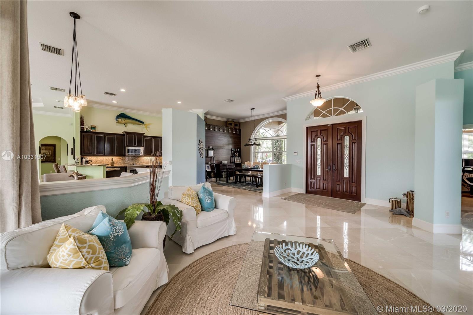 Entertainers dream with Over 130k in upgrades in this move in ready 4/3 + an office in fabulous gated Emerald Isles Estates. Split floor plan with gorgeous marble flooring in all main living areas. Open kitchen featuring granite countertops, wood cabinets, s/s appliances, snack bar, and custom pantry overlooking the expansive family room. Large master suite featuring real wood floors, custom wood wall, and dual walk-in closets. Big secondary bedrooms, and updated cabana bath. Resort style backyard with oversized pool, 10 person hot tub, water slide, custom tiki hut with summer kitchen, and fire pit. Full hurricane protection including impact French doors, and the list goes on.