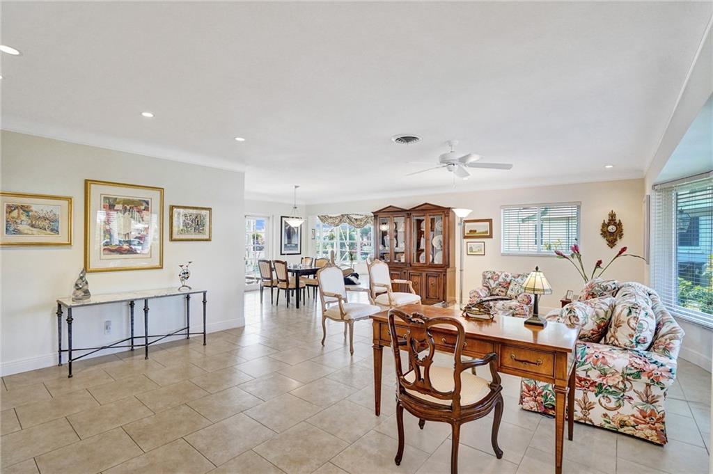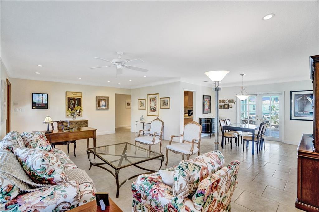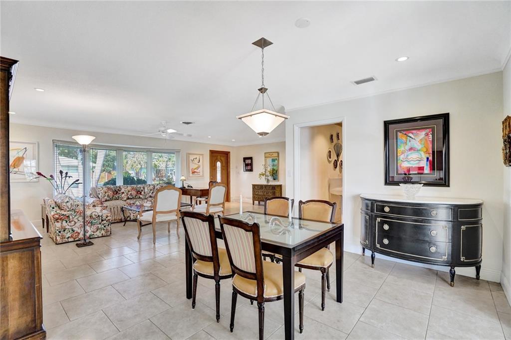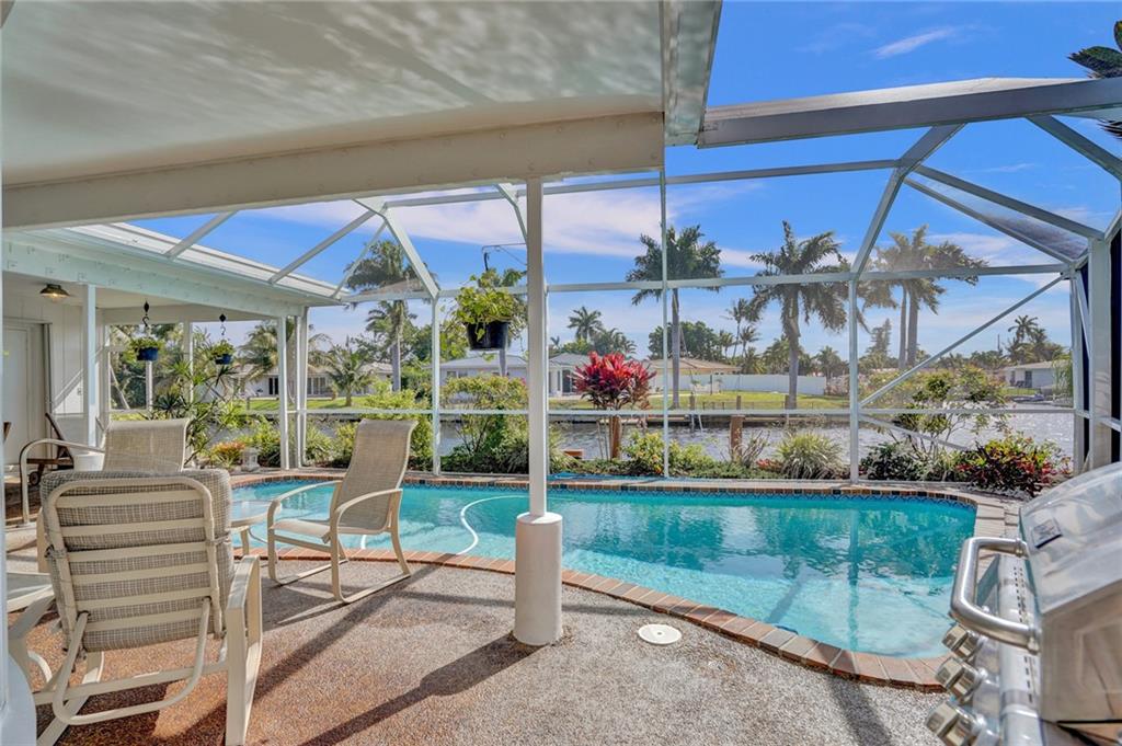 This perfect transitional remodel with 100' of waterfront is one of the largest waterfront homes in prestigious Coral Ridge Isles! Located just one off the point on a quiet cul de sac this 3 bedroom, 2 bath home features a Windowed Eat-In-Kitchen with solid wood cabinets, granite counters & back-splash and stainless steel appliances, a den with a bay window overlooking the sun-splashed pool & canal and a 2 car garage. The recently refinished enclosed heated pool is perfect for effortless year round outdoor entertaining complete with a pass thru to the kitchen! Hurricane impact windows & shuttered doors and neutral tile throughout. Rarely are waterfront homes of this caliber so fairly priced. Come and see for yourself.