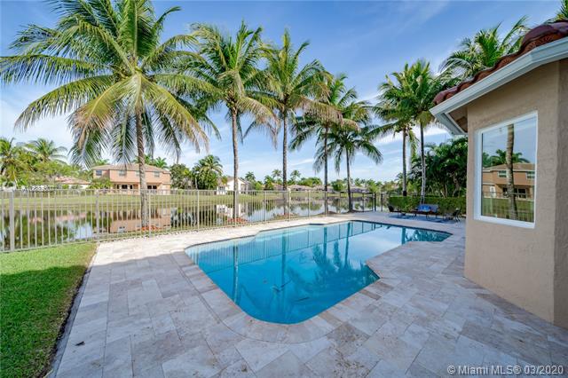 Exquisite home in Weston Hills. Tastefully remodeled. Featuring New Roof New Impact doors and windows, modern stair case, stone wall accents, all new interior doors, walking closets, oversized two car garage with driveway that fits 4 cars, pool with salt chlorination system, cabana bath and a Generator for your peace of mind. Beautiful large backyard, with stunning serene lake view and a balcony perfect to enjoy every sunset. Located on a cul-de-sac. making this the perfect home for a family. Only a two minute walk to the park and great neighbors. Gated community with security patrols. The Country Club offers two of the best golf courses in Broward County and other amenities including, tennis, dining, pool, recreation.