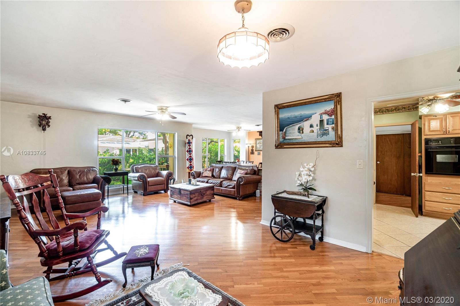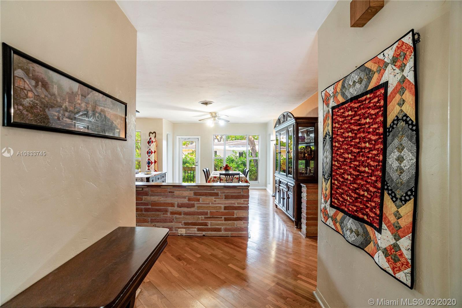 Click on our HD video for a Virtual tour: https://youtu.be/TcEPkSLbxT8 This spacious 1-story home has lots of impact windows for natural light and sits on a beautiful tree-lined street. Features include glistening hardwood floors throughout and open concept living areas with large picture windows to the private backyard. Updates include: newer 2002 wood kitchen cabinets, granite counters & backsplash, 2005 PVC plumbing on east side and replaced hall bathroom including Jacuzzi tub, 2006 replaced master bath and 2012 stamped concrete driveway. Master bedroom 14x13. Second bedroom 14x12. Third bedroom 11x12. Walking distance to Red Bird shopping area and biking distance to UM.