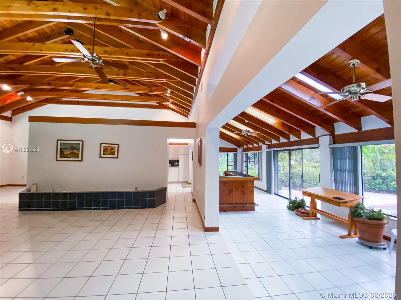 Prime Location in Pinecrest, within Gables by the Sea community! Extremely spacious, bright and elegant one-story home located in a very peaceful cul de sac. Features high wood vaulted ceilings, 2 large family rooms looking out to the pool and garden area. In-laws qtr. on one side for more privacy. This cozy home is sorrounded by landscape on a beautiful 18,455 adj. sq. ft. lot, has a built in shed next to the pool to enjoy special gatherings. Amazing home ready to decorate to your own taste. Owner is willing to hear all reasonable offers. Show-assist for Lbx combo.