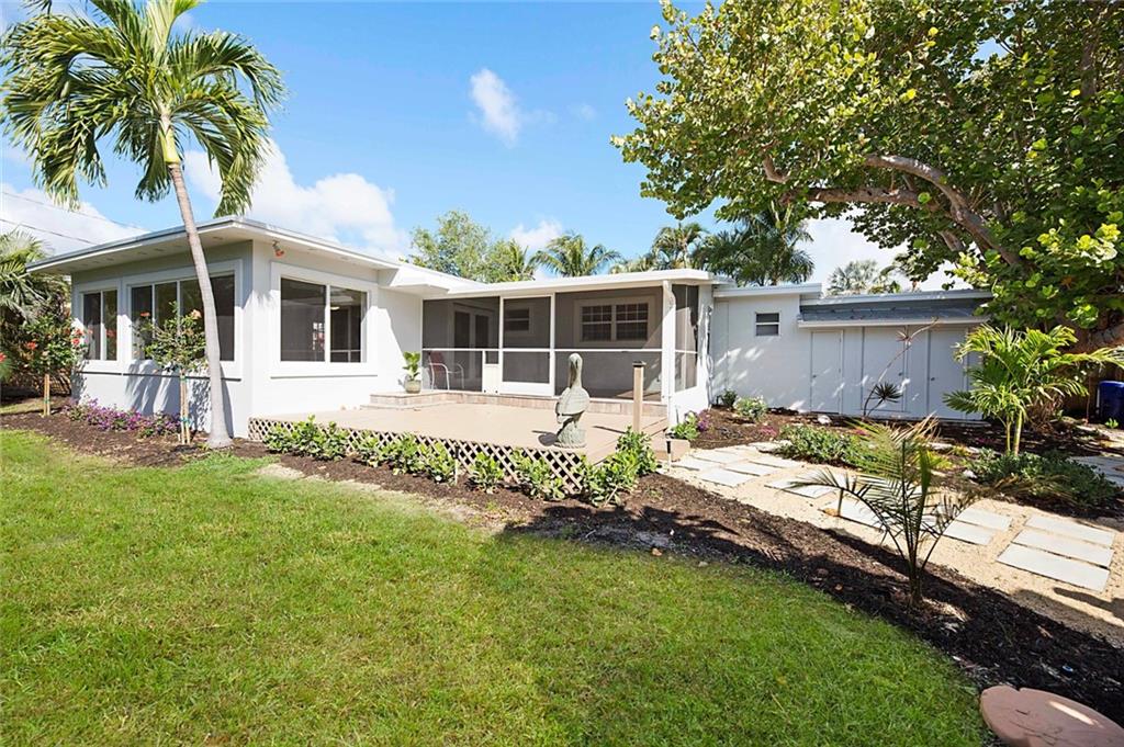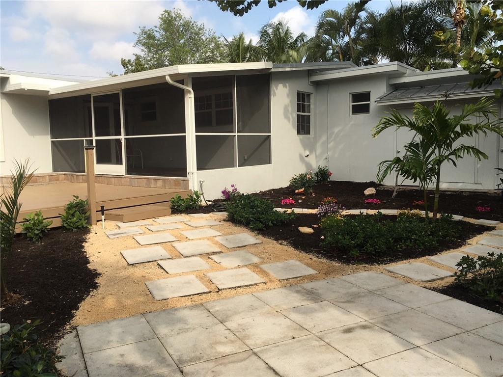 What a wonderful opportunity to own this renovated tropical oasis. The newly installed metal standing seam roof and lush landscaping perfectly set the scene.Remodeled with SS appliances and impact windows and doors painted in/out, wood,marble and tile floors work to create the total picture. You are within one mile of excellent restaurants as well as great food and boutique shopping. Separate lockable en suite bedroom /outside door is perfect for guests. A green house style planting area off the kitchen and a south facing back yard is off the huge screened patio and deck and so many lovely garden areas wherever you look. Oasis(reuse water)property is inexpensive and environmentally sound.Large lot 9,350 s.f. with ample side and rear yards. You feel and smell the Ocean in your back yard