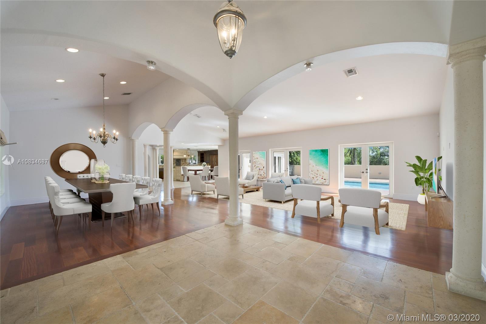Enchanting Euro-style residence located on historic Old Cutler Rd in the Gables-by-the Sea area. Walled + gated for privacy, the home offers a split BR plan and expansive living areas. Sited on a 37,000 SF lot, it offers access from the rear road in addition to the main entry on Old Cutler. The measured openness of the interior and the significant use of windows/doors (impact) blend inside and outside living. Newly expanded/added is the 5th BR with en-suite bath + another 2-car garage. Access to this newly added area is via the heavenly loggia connecting both areas of the estate. Schools + parks are all a short distance away! No flood zone! Virtual walkthrough now available! https://my.matterport.com/show/?m=a6oUTHqiumm&brand=0