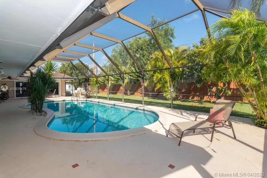 Magnificent new Pinecrest listing! 4 bedrooms 3 bathrooms, featuring 2 master suites (split bedroom floor plan) Ideal for large families and/ or in-laws quarters lay out. Large open concept floor plan with wall to wall hurricane impact glass doors opening to pool terrace area. New Gourmet kitchen featuring ss appliances and stone counter tops with island seating for 9. Huge multi purpose bonus room off kitchen area (600 sqft) with wall to wall hurricane impact glass doors opening to pool terrace area. Updated bathrooms, large covered terrace, screened-in pool area on mature manicured tropical setting with mango, avocado,fig trees and banana plants. Quiet street location within walking distance to Howard Dr Elementary & Palmetto middle schools. Easy to show.