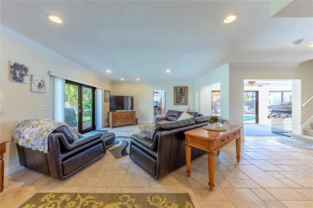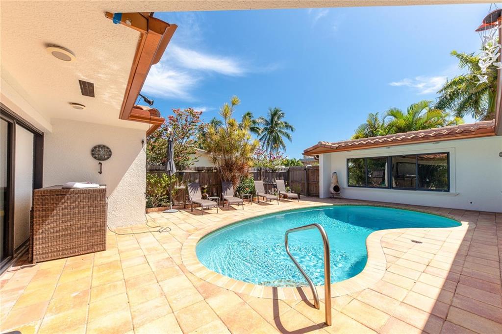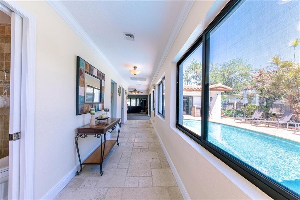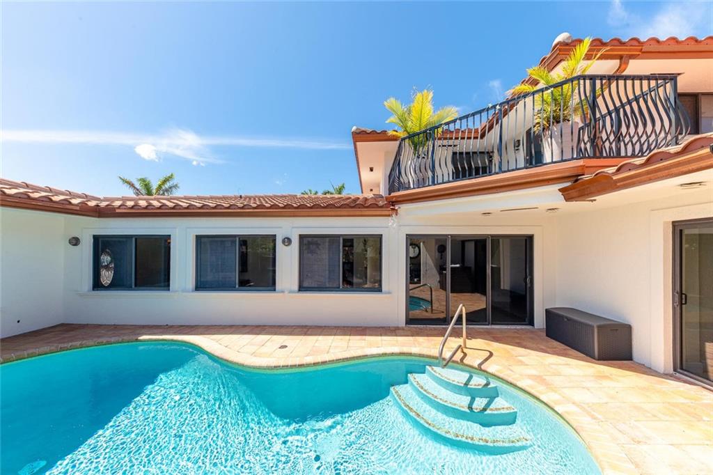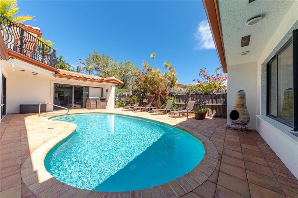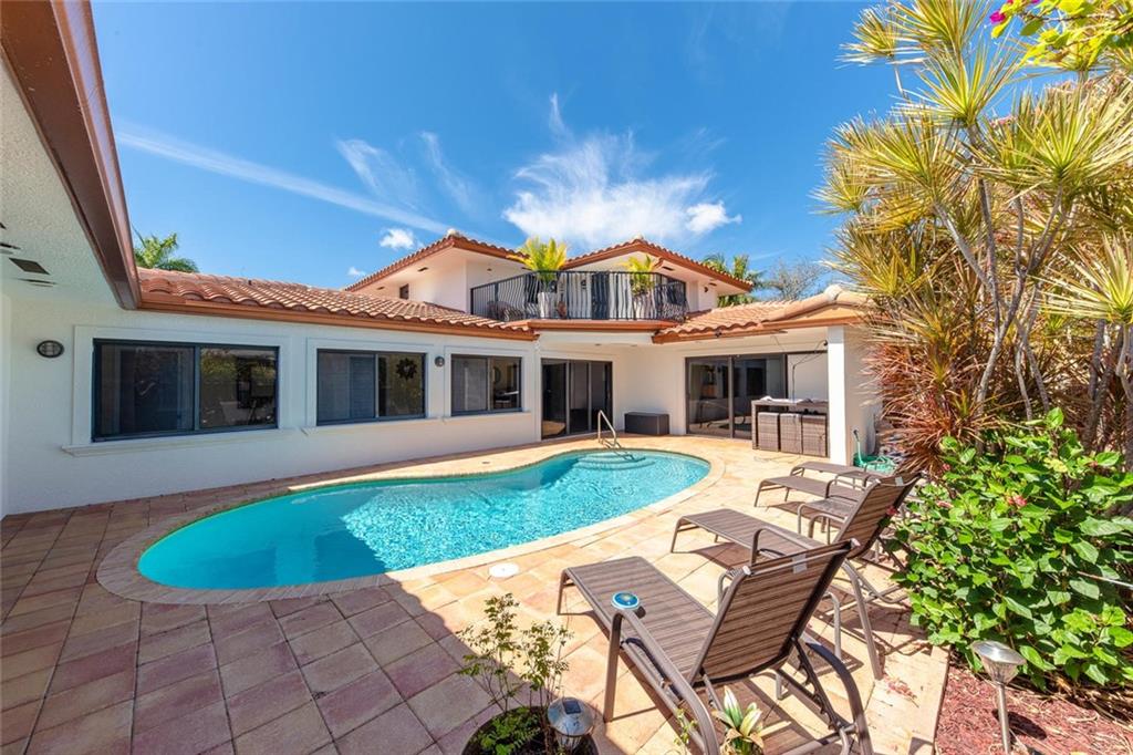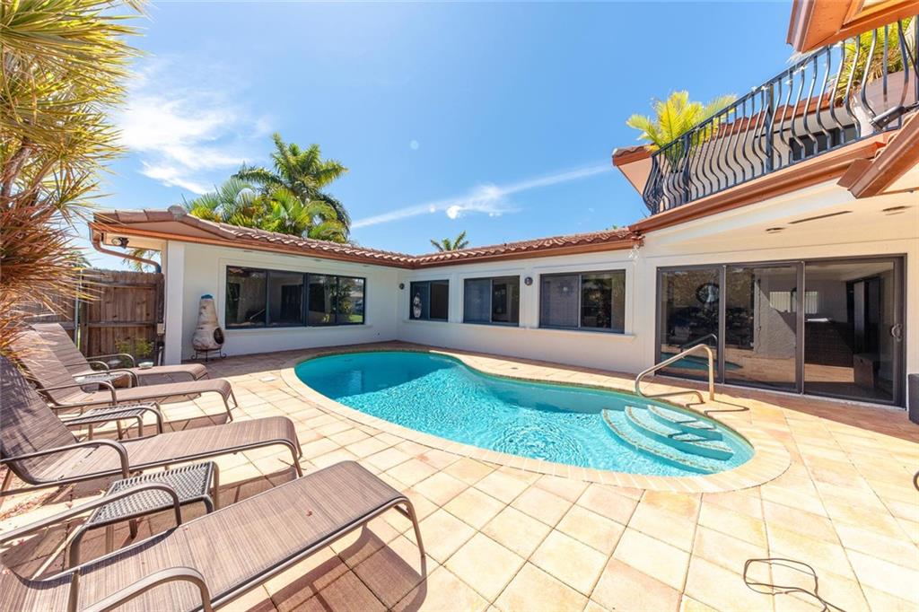 Spectacular large updated courtyard style home, steps to the beach, dining&entertainment. 1 Mile from the golf course&dry boat dock storage! Directly in the middle of the CRA redevelopment. Barrel tile roof, AC's and new paver driveway only 1 year old. Travertine flooring, Smart designed updated kitchen with bar, wine cooler, stainless appliances& breakfast bar open set up. Impact windows and door T/O, interior laundry room,2 CG, 4 full baths. Updated electrical, updated PVC plumbing. 2nd story addition completed and many updates in 2006. Excellent master suite with southern facing balcony overlooking the saltwater pool. One full suite 2 baths downstairs.The home has a very solid & rich feel.When you enter, you have a grand entryway that is bright & exciting surrounded by the pool.