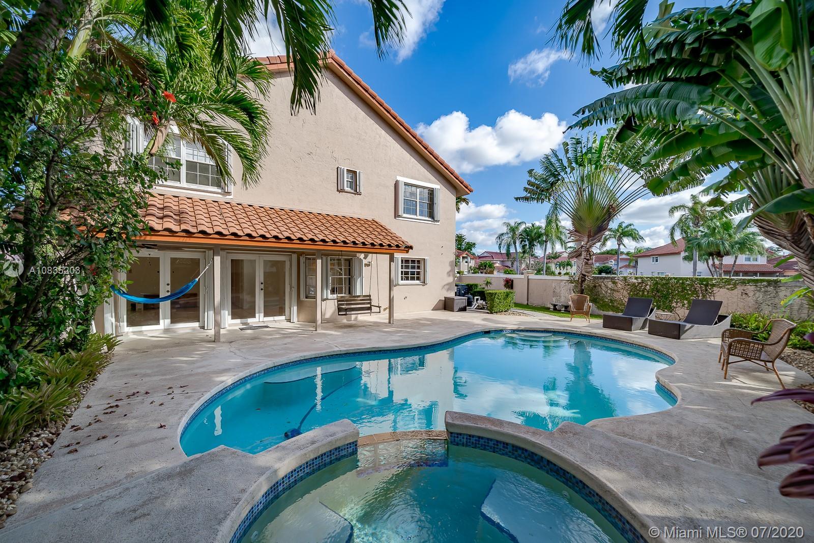 Spectacular Corner House 4 Bed/3 Full Bath +1bedroom, remodeled kitchen and bathrooms,ample spaces, laminated floors,surround system,new A/C, roof have 7 years,ample lot with pool and dining outside area,shutters, gated community, 24 Hours security, Club House at Doral Park includes pool,tennis court,payground, and restaurant, in the Heart od Doral close by Doral Dowtown and City Center