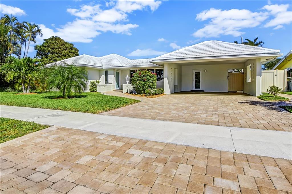Absolutely stunning, mid century 3/2 pool home in Imperial Point!! This home has been totally updated from top to bottom! New roof, restored sparkling terrazzo floors, new white shaker kitchen cabinets with quartz countertops, new electric, AC, paver driveway, impact windows, salt water pool with heater and all new pool equipment and so much more. This home has tremendous curb appeal and a large open concept that is light and bright!! Large 2 car carport and fresh landscaping!!! A MUST SEE!! THIS HOME HAS IT ALL!!