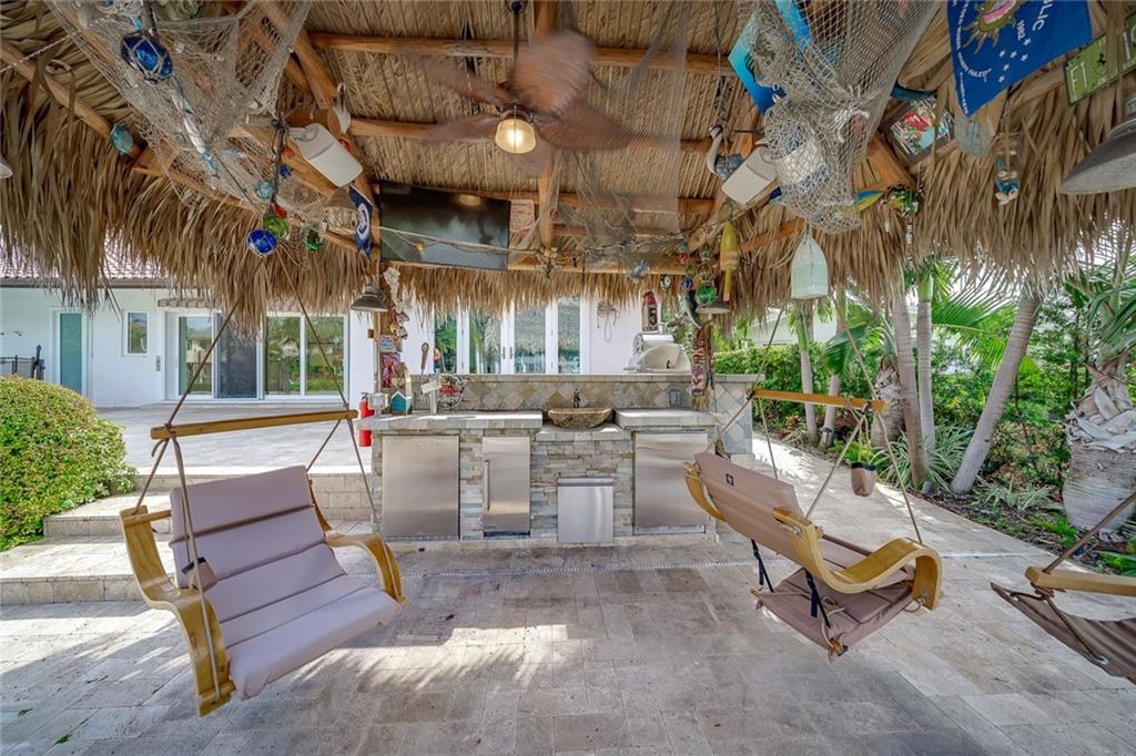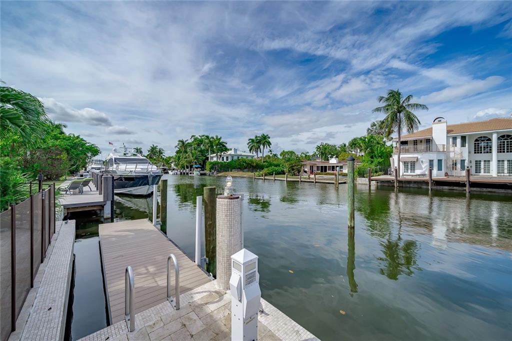 LAND VALUE OPPORTUNITY! Situated on 100'± of ocean access, water frontage in the desirable, security patrolled and gated Seven Isles community of Las Olas Isles. Owner purchased in 2016 for $2.145M and added nearly $500,000 in renovations including impact doors/windows, with 4-panel sliding door to the outdoor space, Wolf and Subzero appliances, electrical, new baths, flooring, and motorized electric shades/plantation shutters throughout. Enjoy the South Florida lifestyle, around the heated pool, Wolf summer kitchen with pizza oven and your own private Tiki hut equipped with ice maker and beverage cooler, play Bocci Ball on the court waterside. Floating dock & 2ft dredge. Great proximity to the beaches, shopping and dining Las Olas Boulevard. Chandelier in foyer not included.
